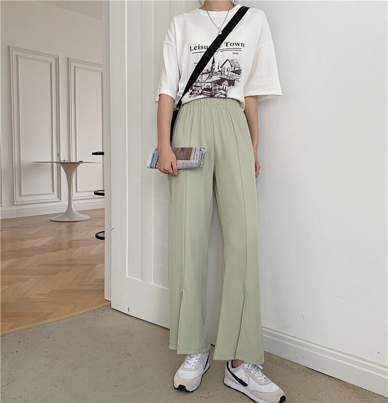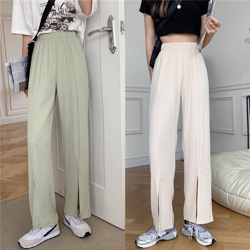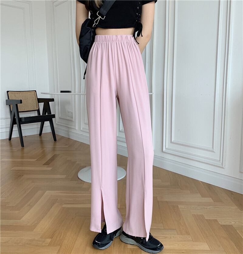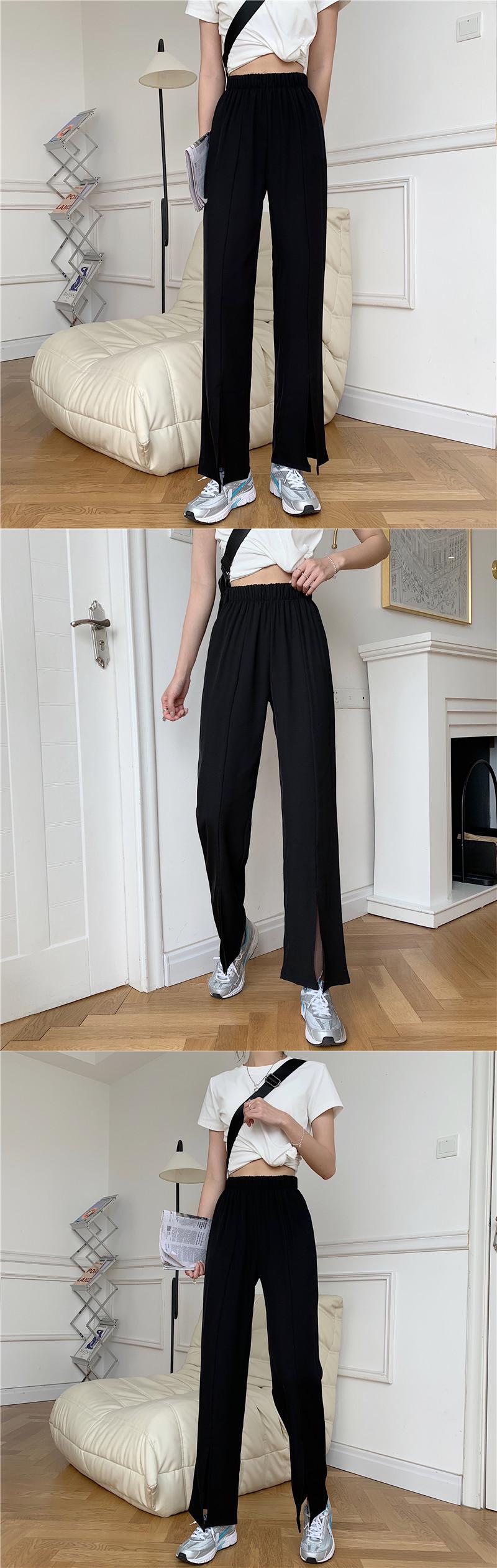 ブラックワイドレッグパンツ カジュアルレディースサマーハイウェストウェストルーズ薄手 夏物 ワイドパンツ YY-ファッション85490530469