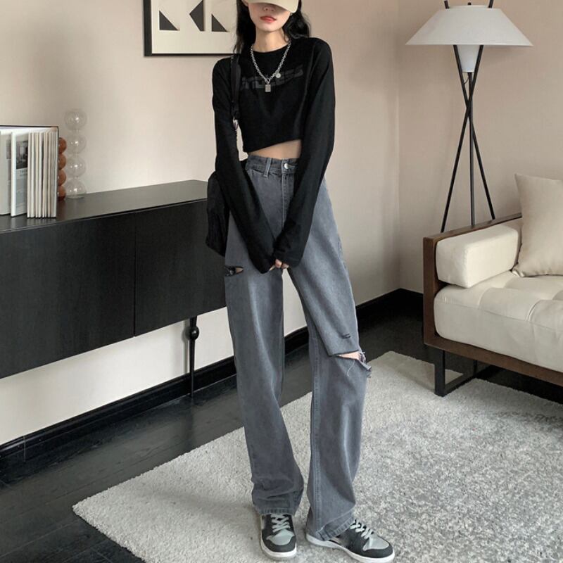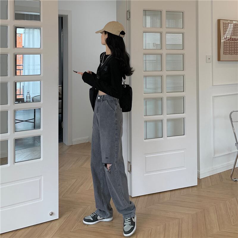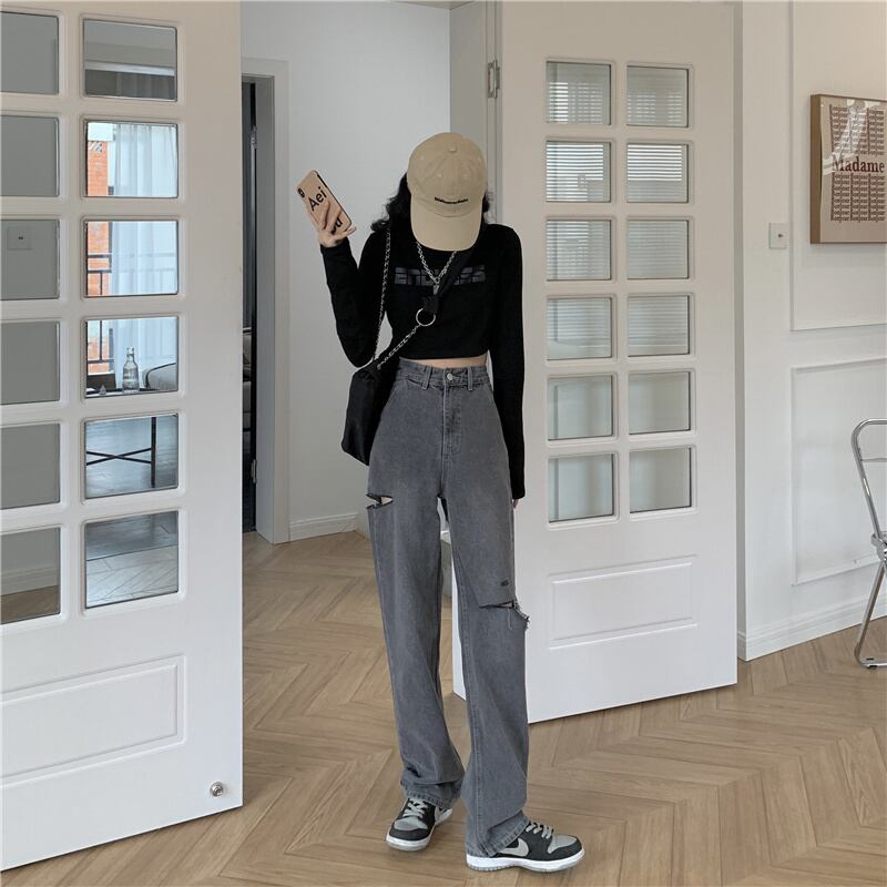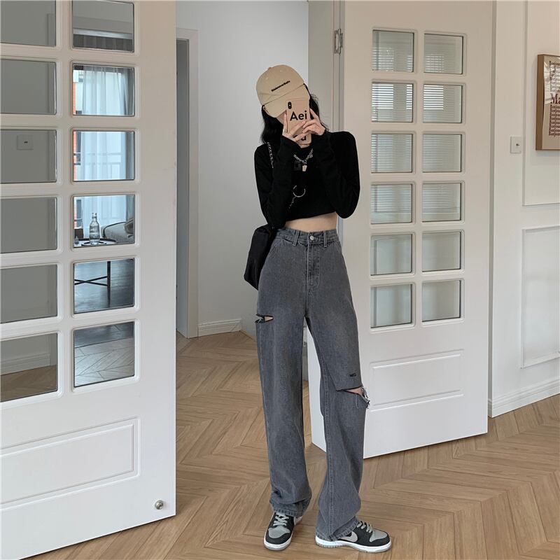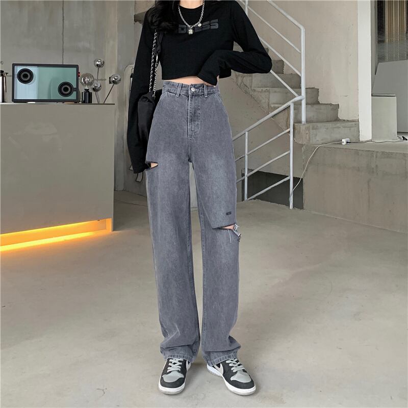 スタンダード薄手ジーンズ ルーズパンツ スプリングハイウェストウェスト レトロ 春物 YY-ファッション94767605112