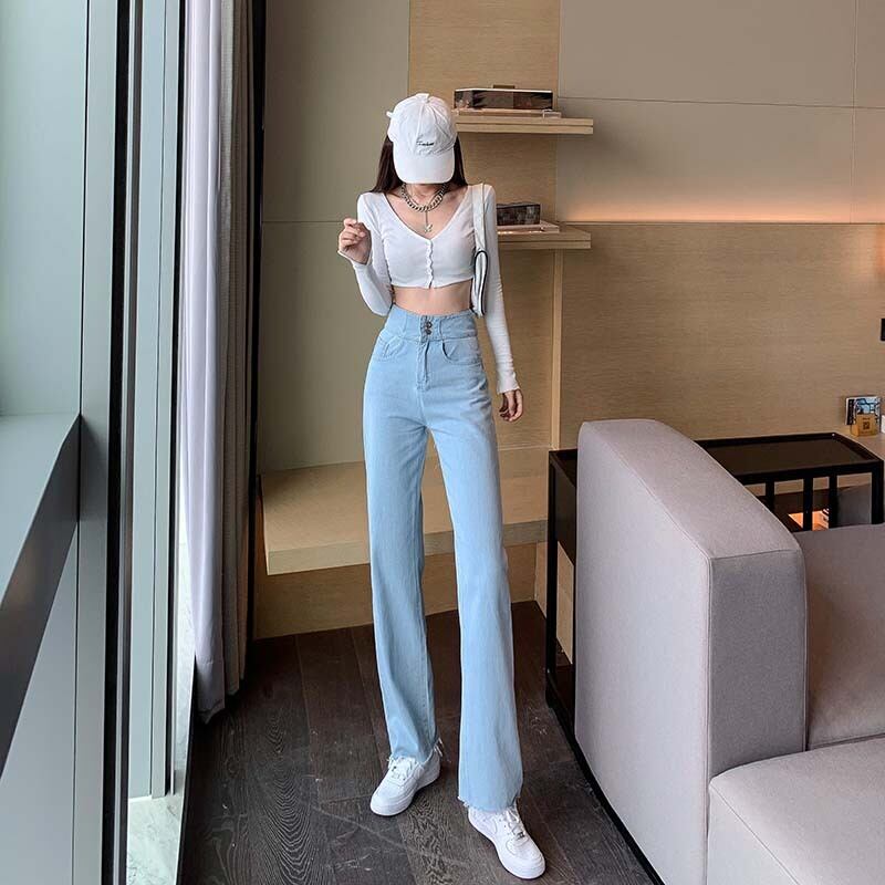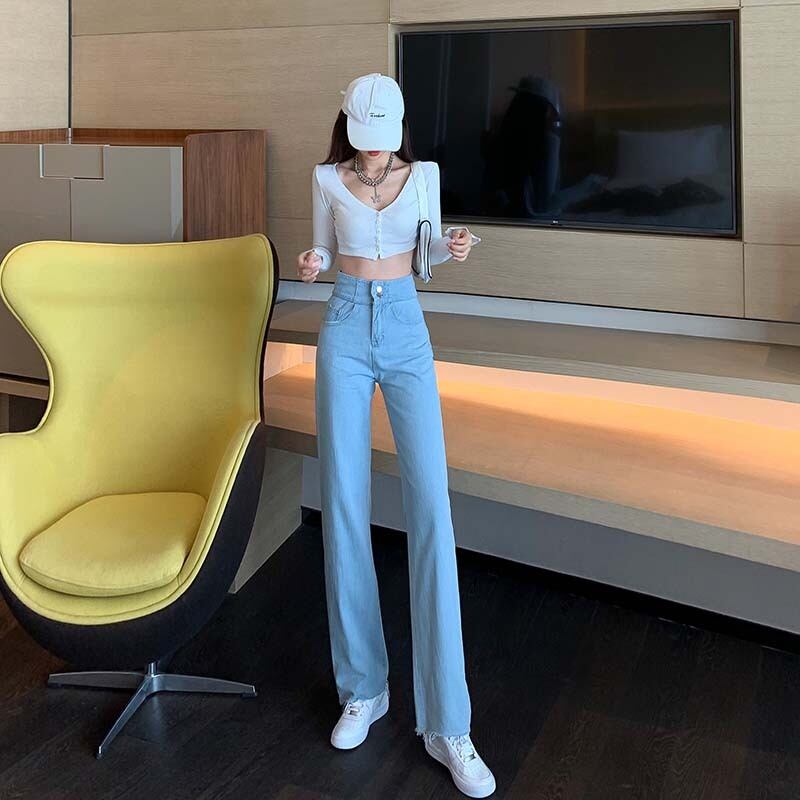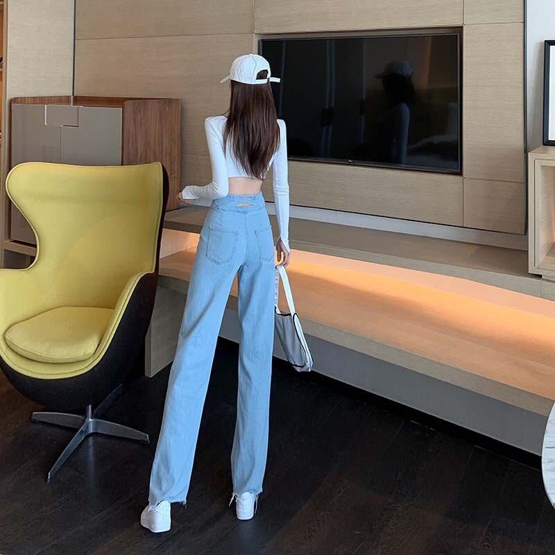 スプリングハイウェストウェストスリムジーンズ ワイドレッグパンツ レッド 春物 ワイドパンツ YY-ファッション68264677437