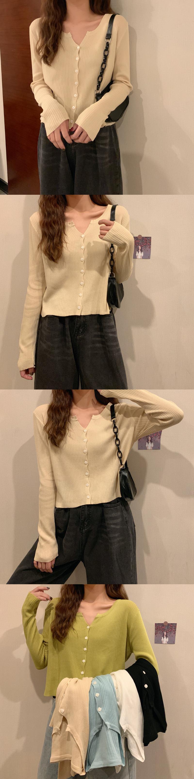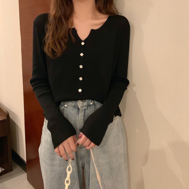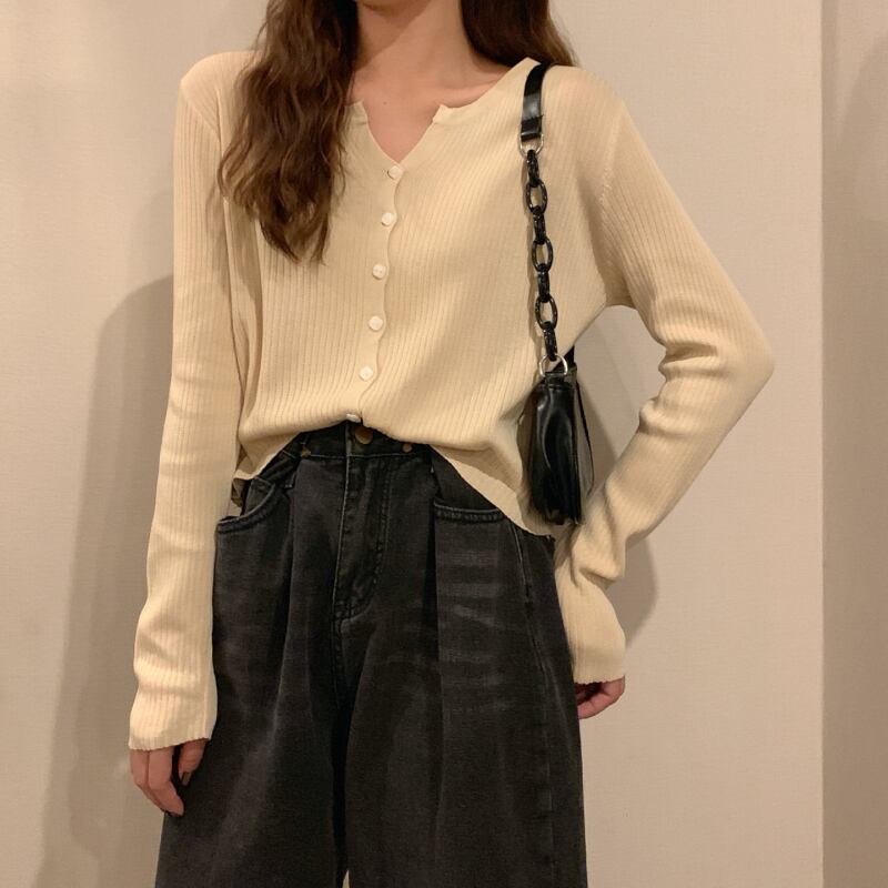 スプリングオータムルーズ薄手ニットカーディガンシャツ ソリッド カラーショート ロング 春物 秋物 ソリッドカラー YY-ファッション16330950384