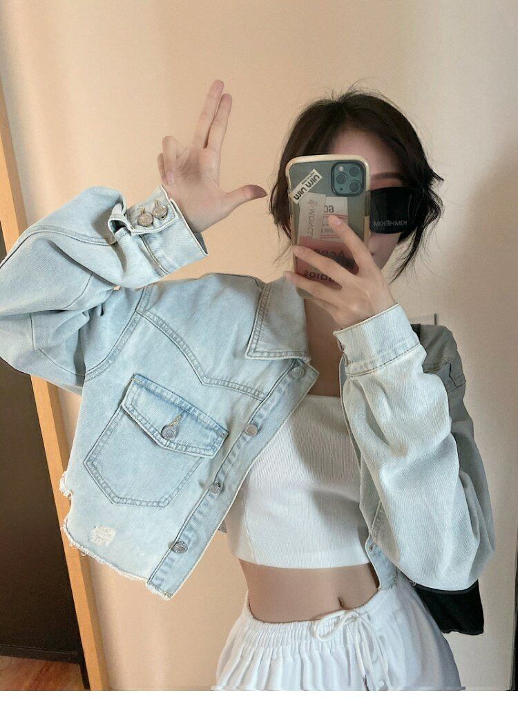 スプリングスタイルルーズスタンダードジャケット ショートカジュアルトップス ロング レトロ 春物 YY-ファッション10932990269