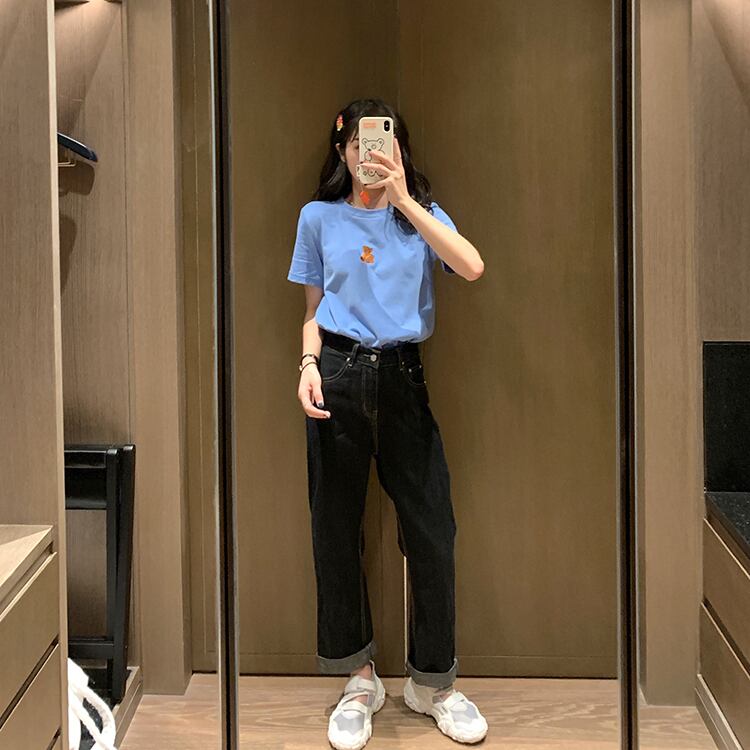 ブルーTシャツ サマールーズ薄手ジーンズ トップス 大人ガーリー スウィート キュート カジュアル 夏物 YY-ファッション18235344917