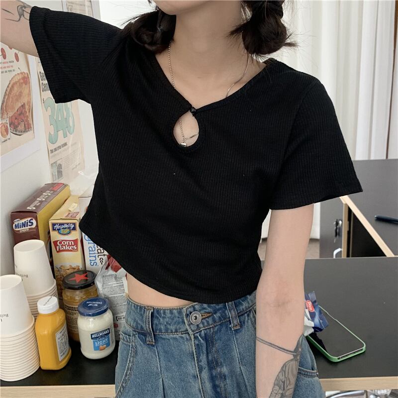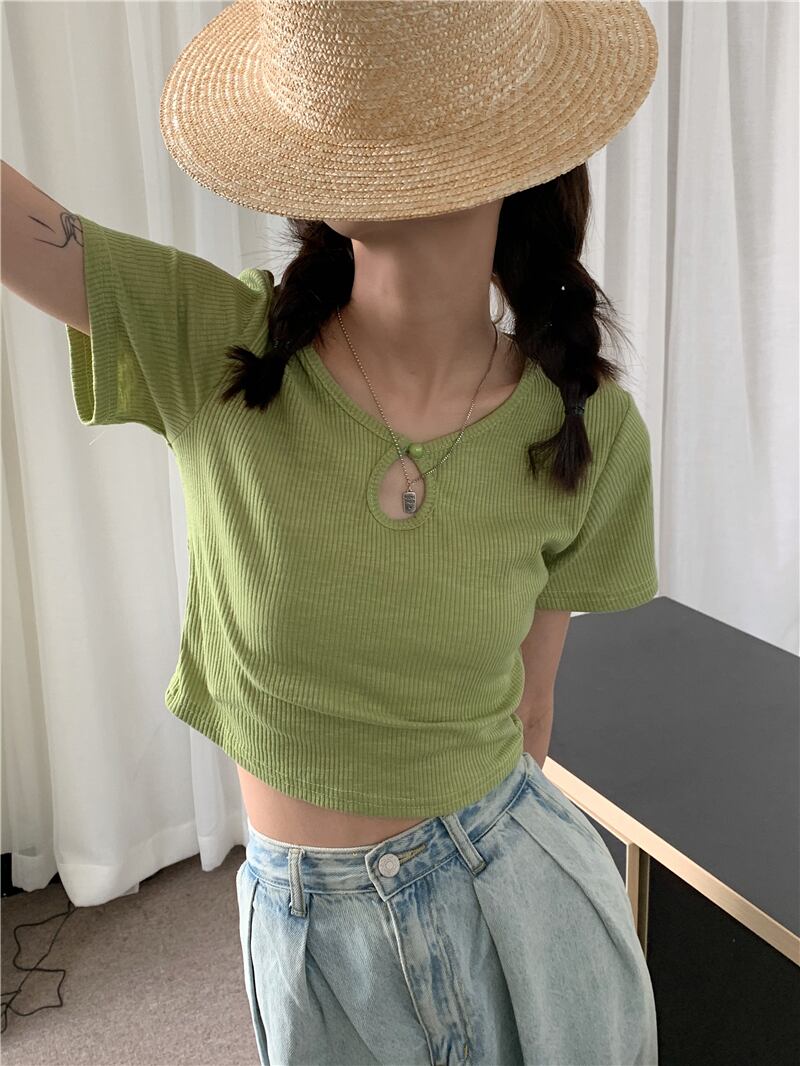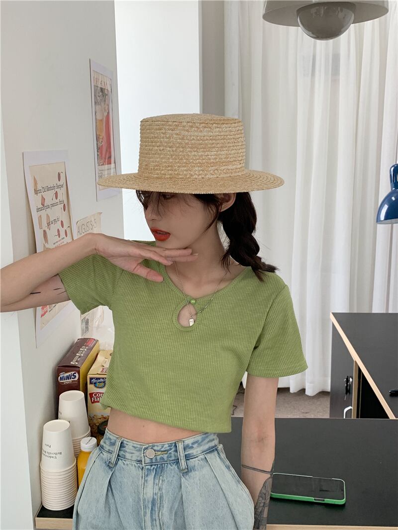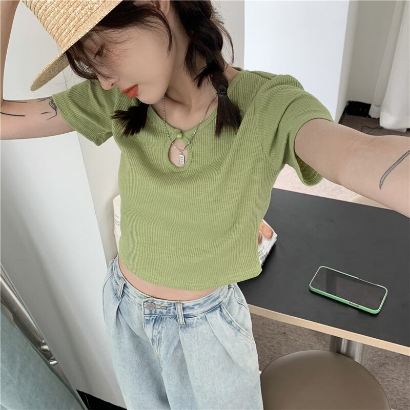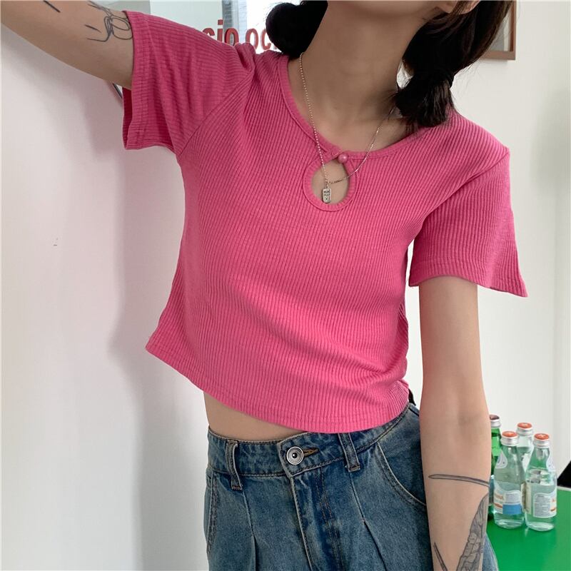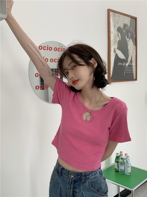 Tシャツ ショートサマースリムハイウェストウェストクロップドトップス ピンク 夏物 YY-ファッション43322784387