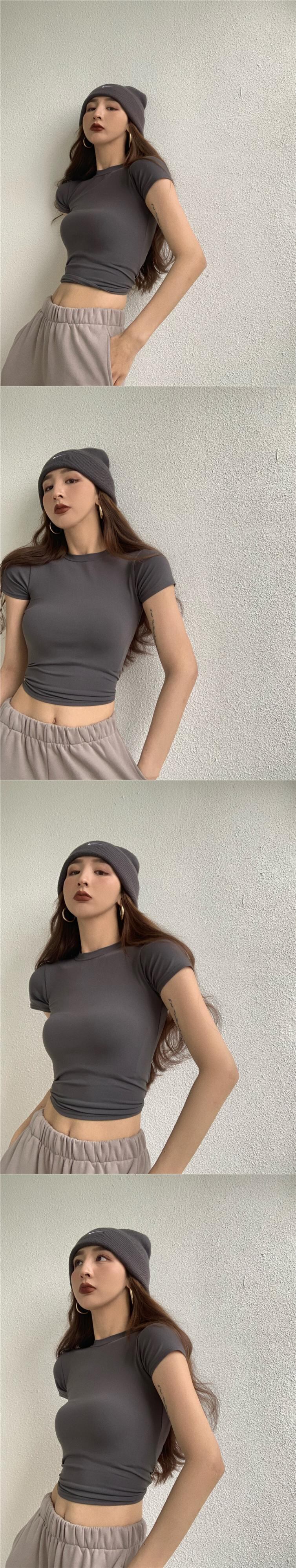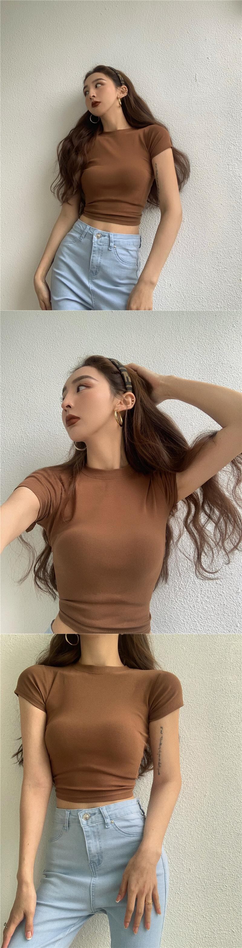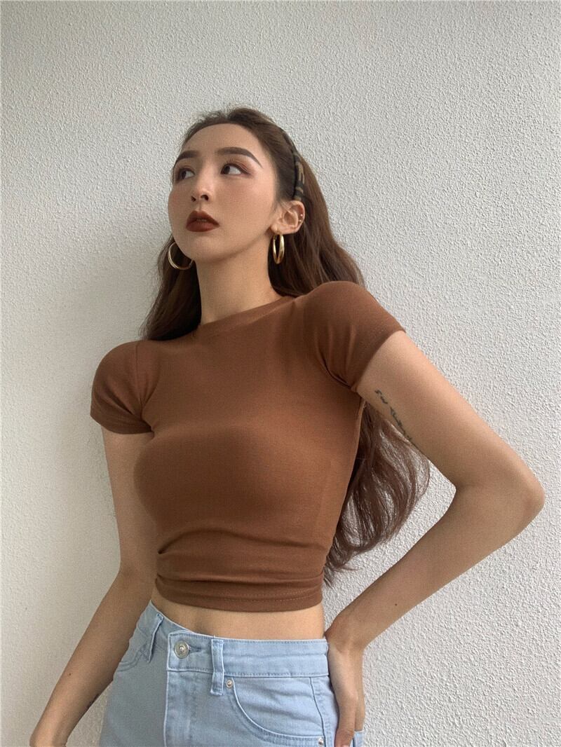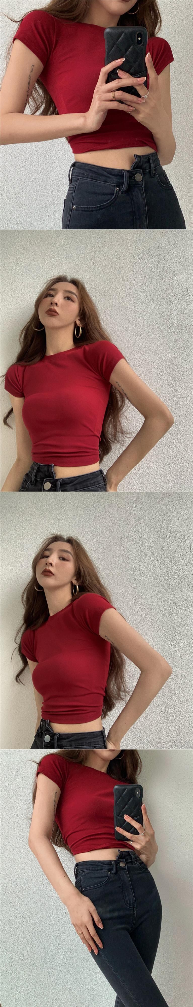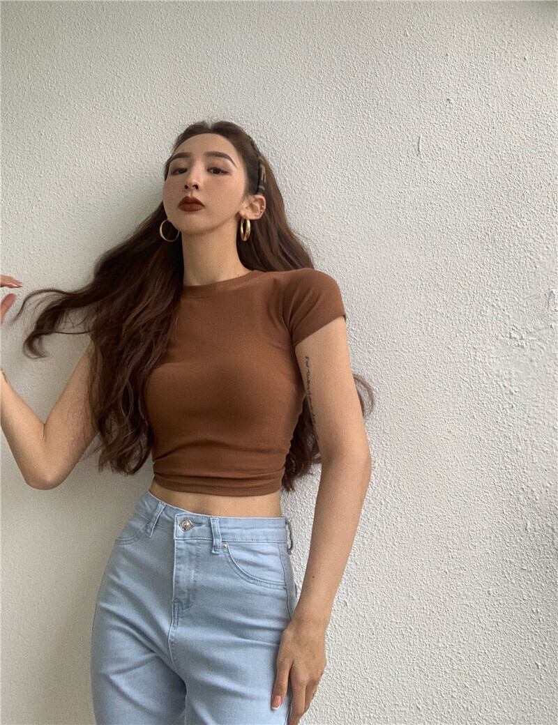 スタイルブラウス サマーハイウェストウェストソリッド カラーショートTシャツ 夏物 ソリッドカラー ヨーロピアン YY-ファッション23452825121