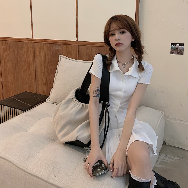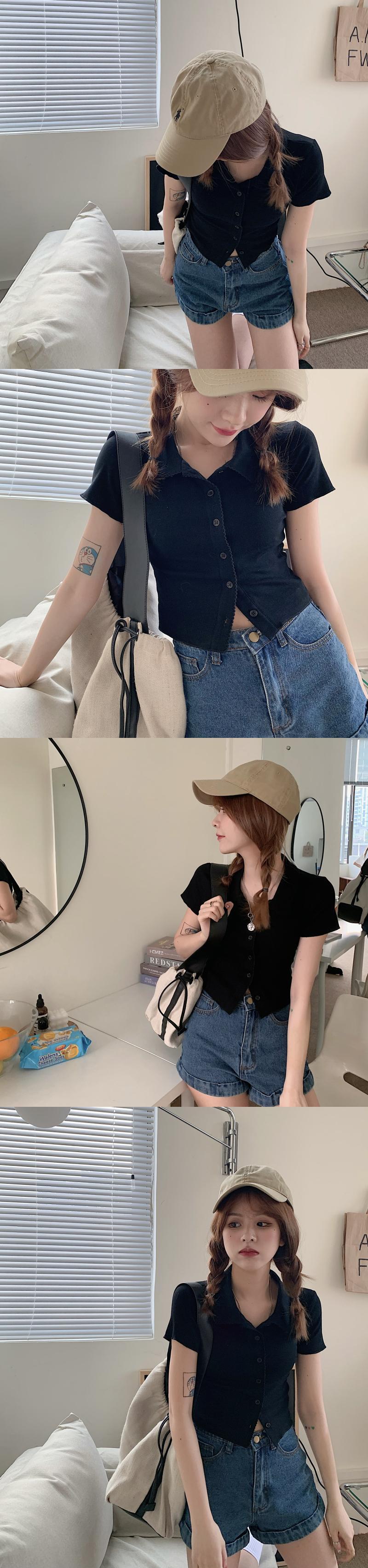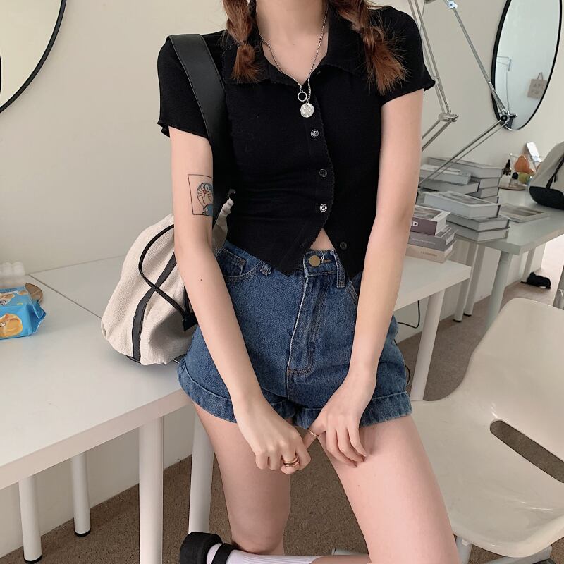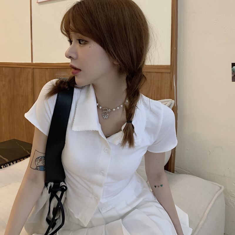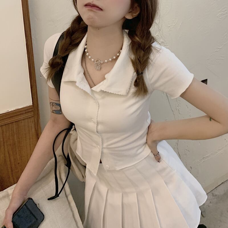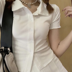 カラー半袖スリーブTシャツ サマー薄手カーディガンハイウェストウェストホワイトトップス ショート ハーフスリーブ 夏物 YY-ファッション75900085673