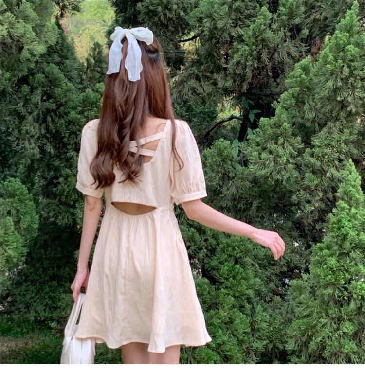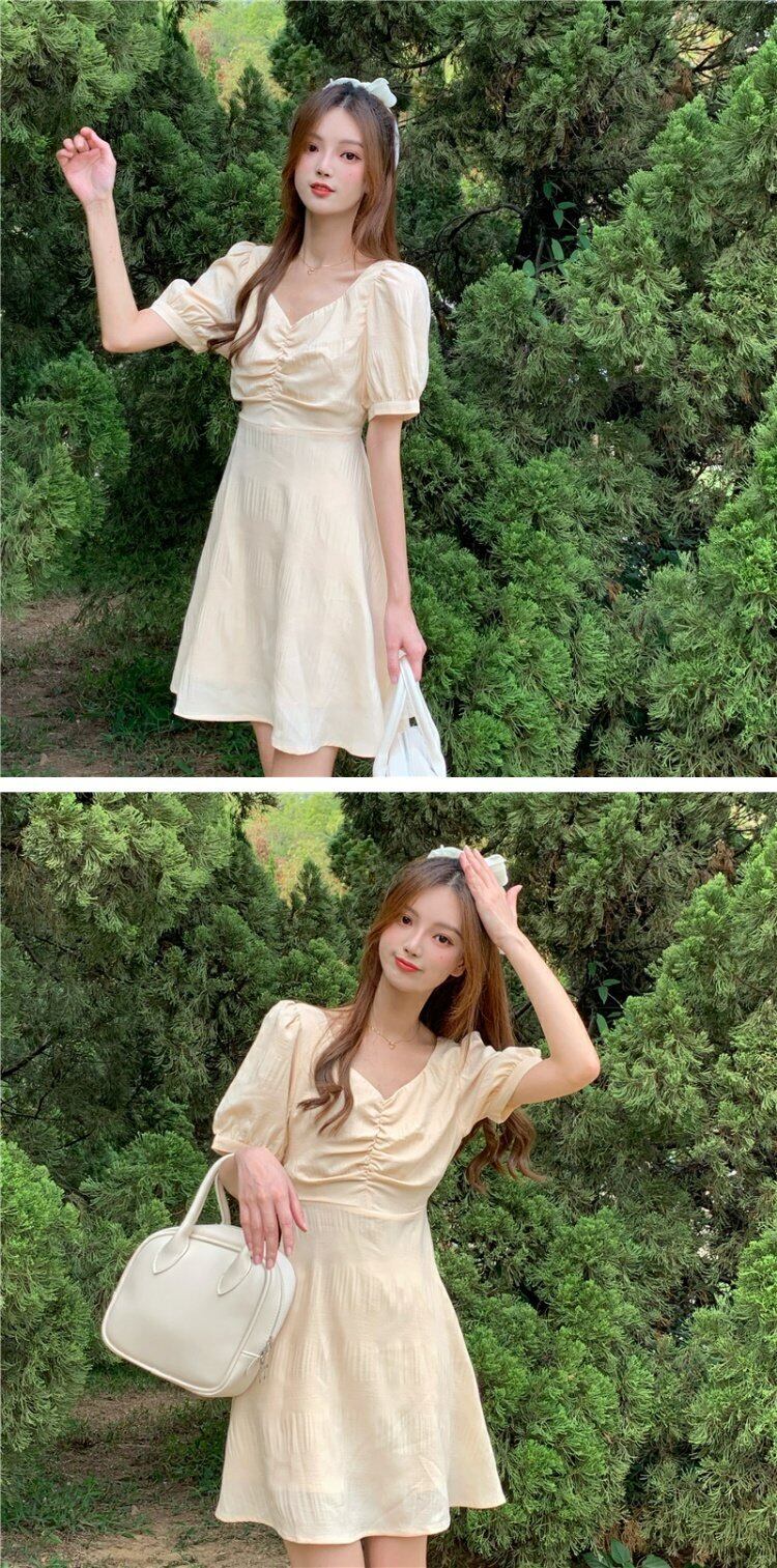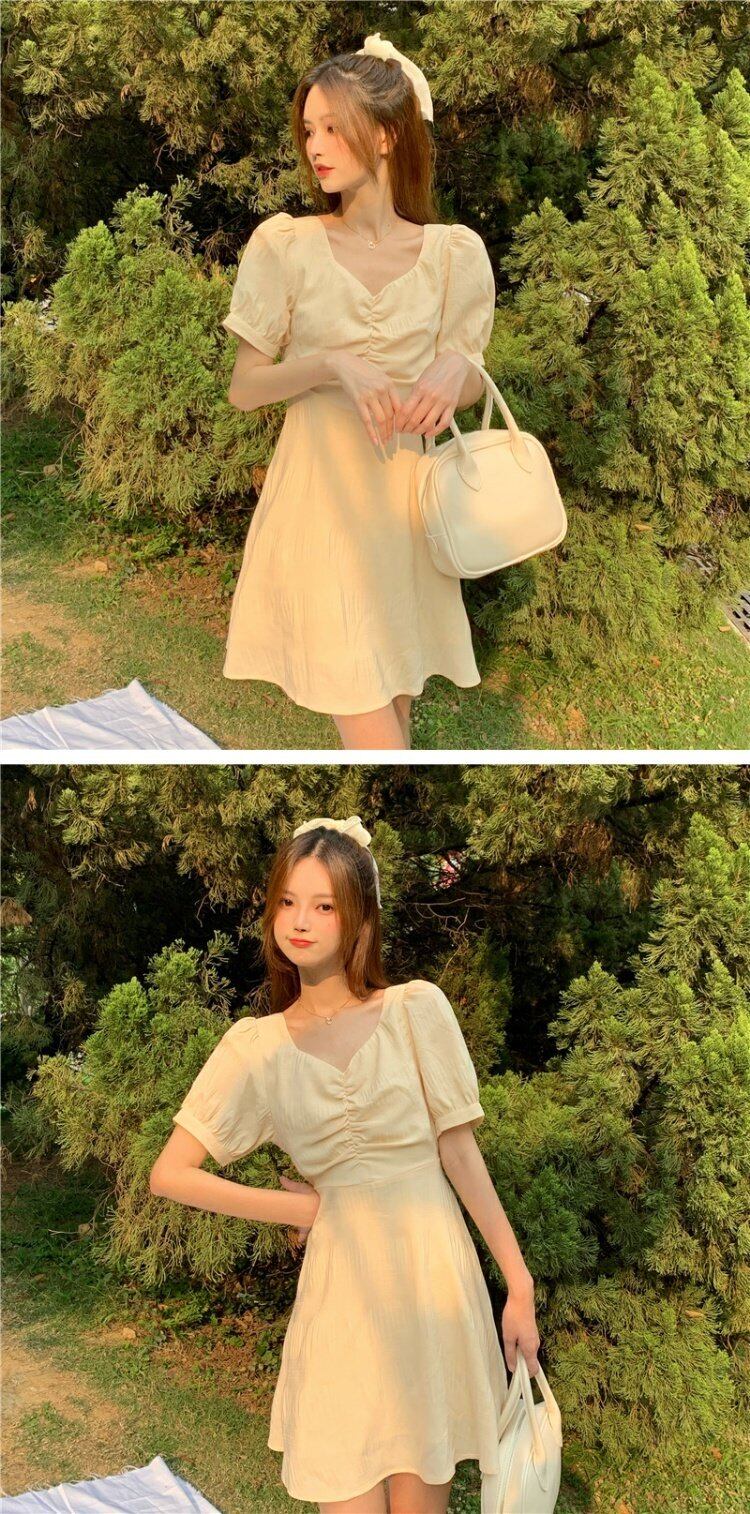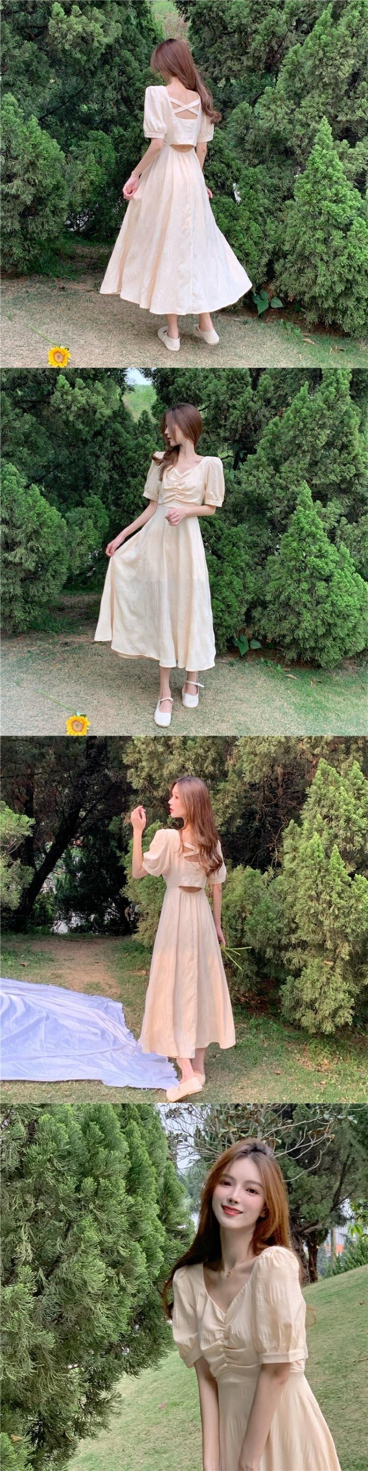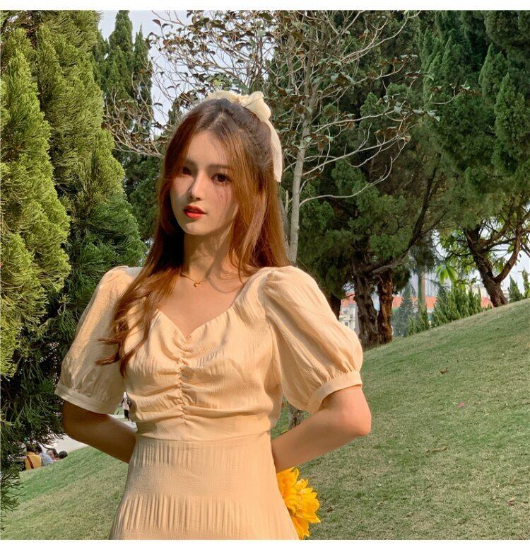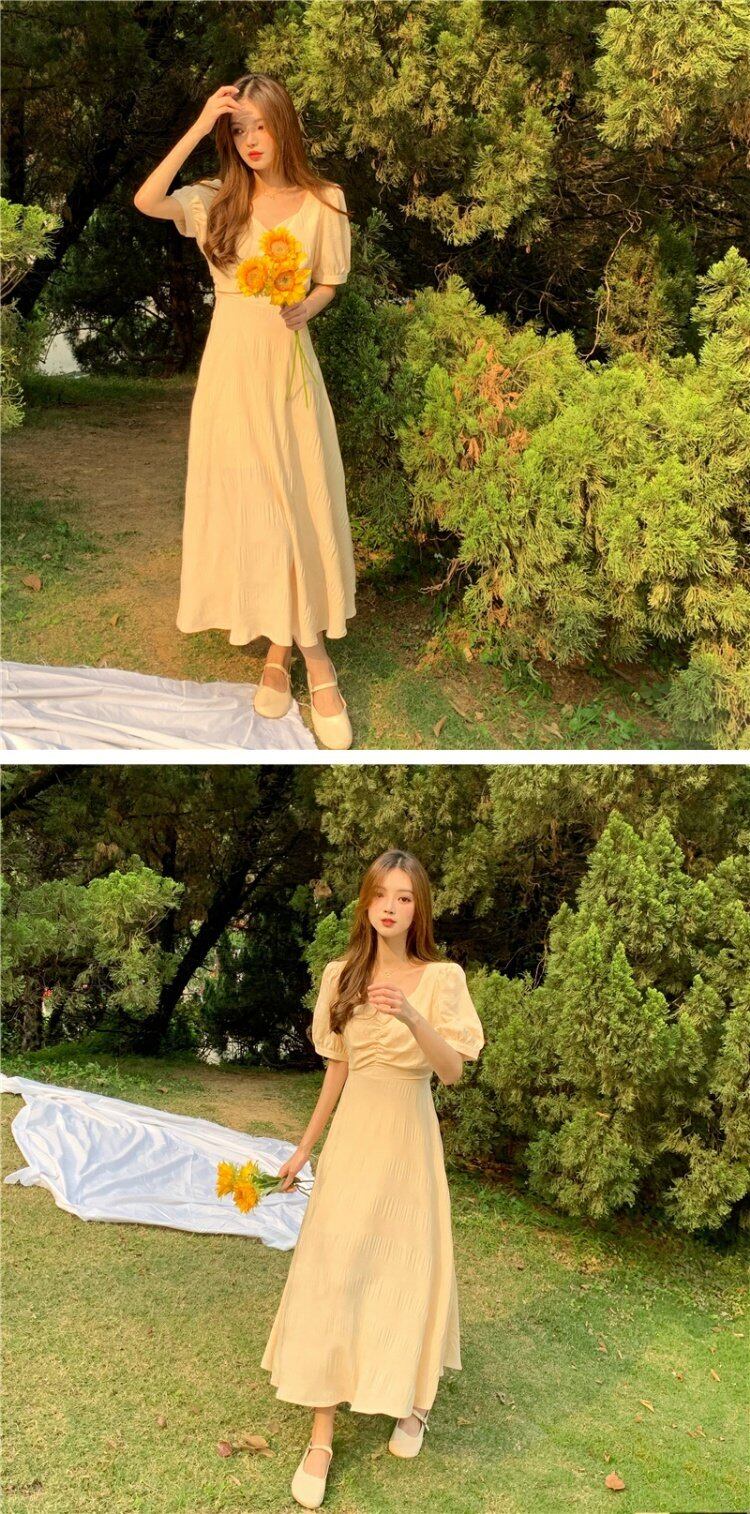 ドレス サマースタイルVネックイエローバックAラインスカート 夏物 YY-ファッション77716925834