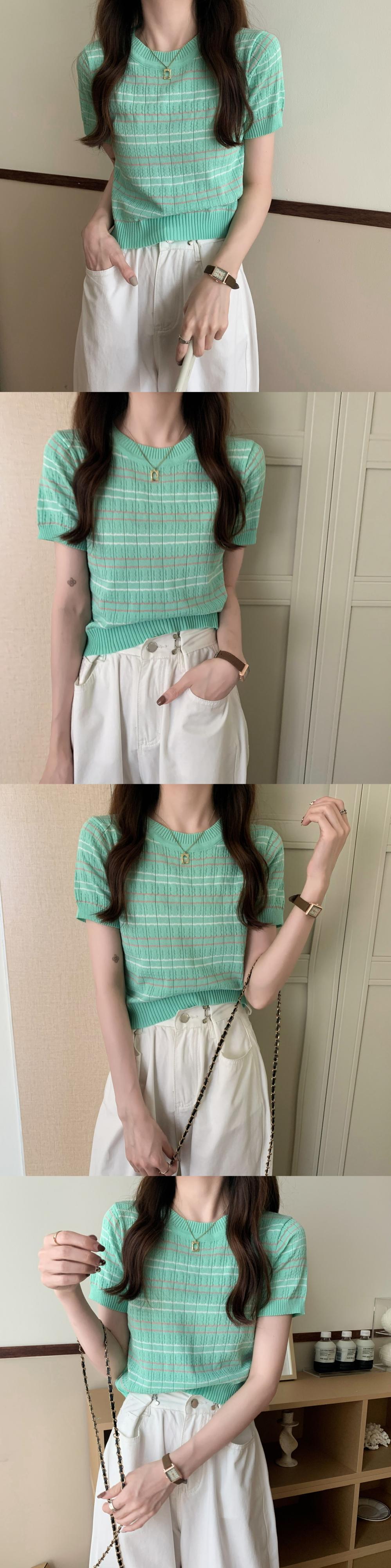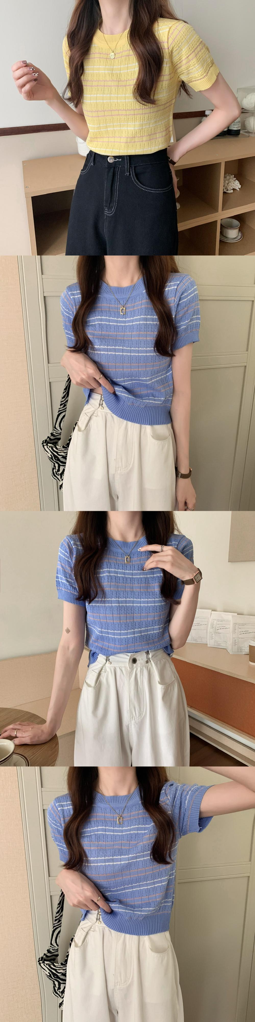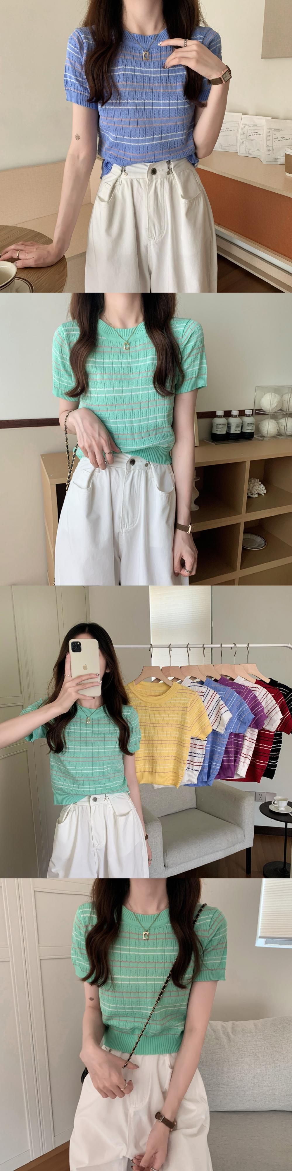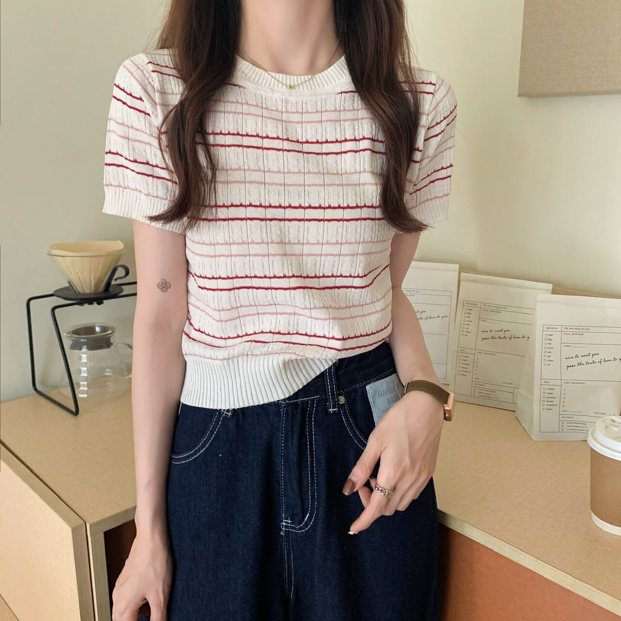 サマールーズショートストライプジャケット 薄手ニットTシャツ 夏物 YY-ファッション45314469269