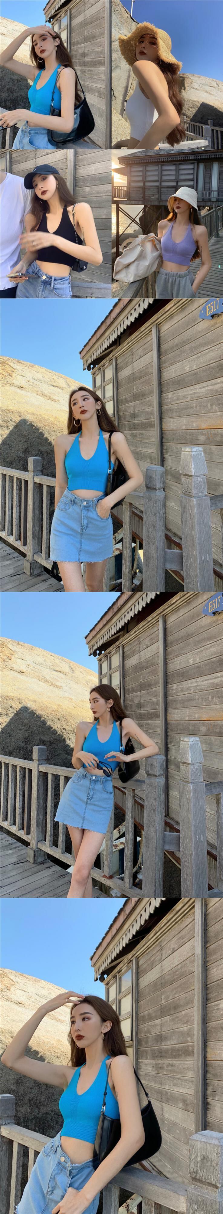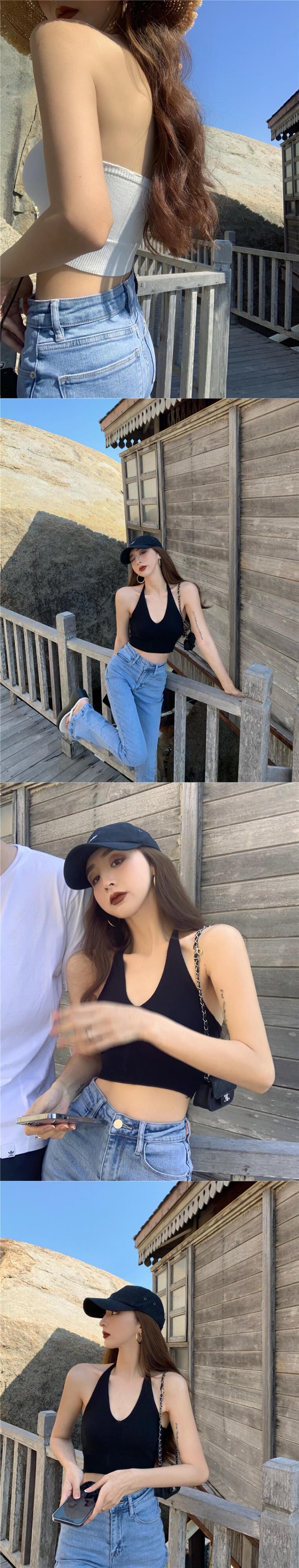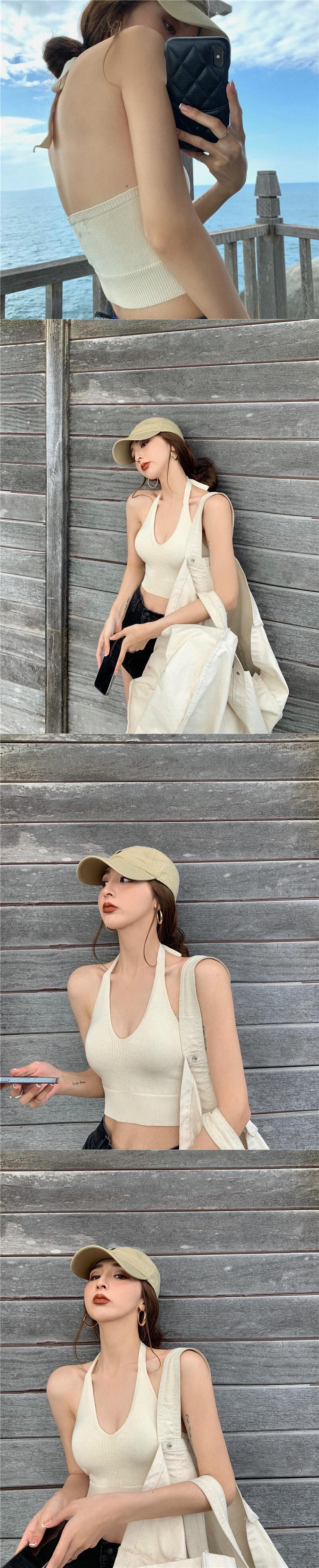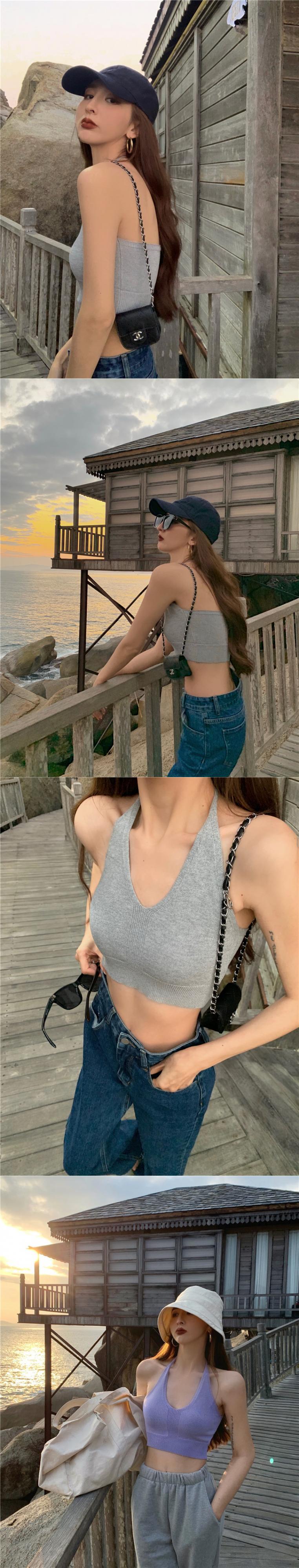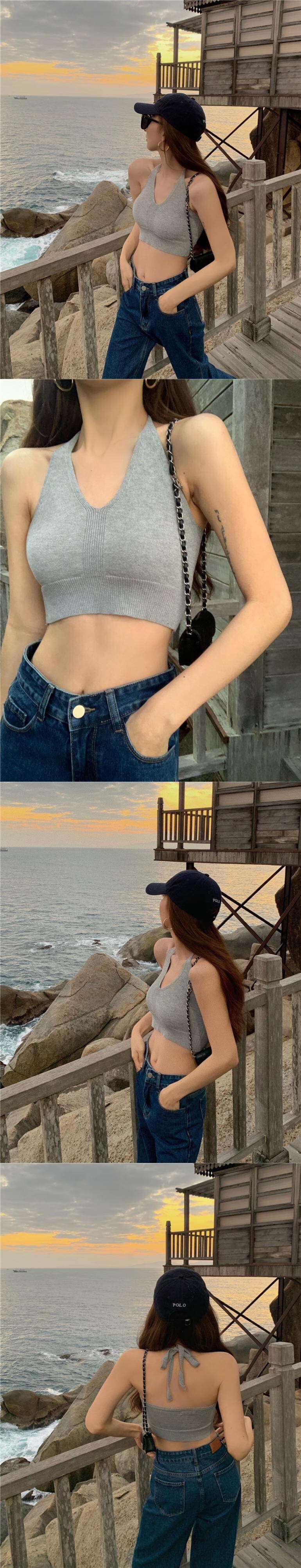 Vネックノースリーブニットシャツ サマーショートホルタートップス 夏物 YY-ファッション43731409352