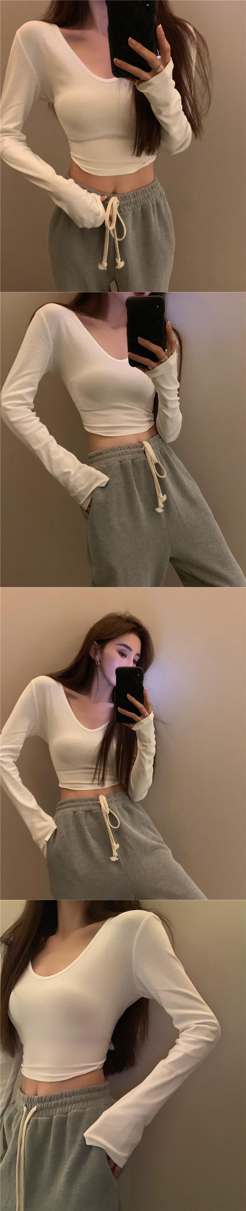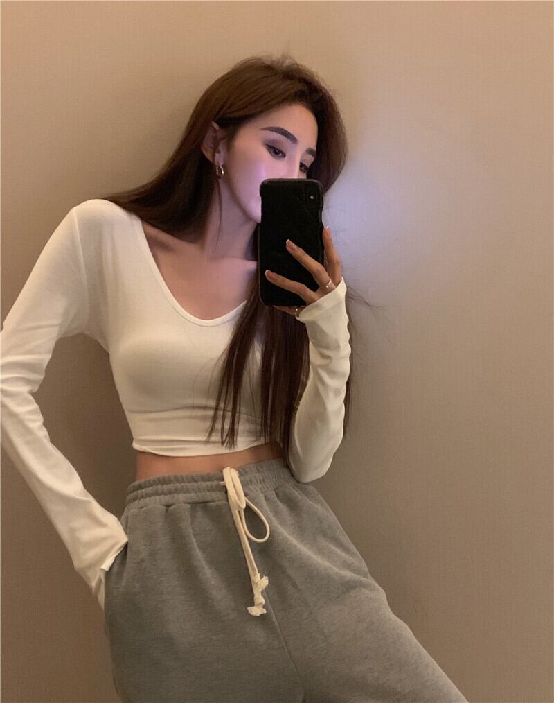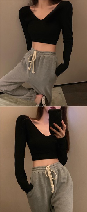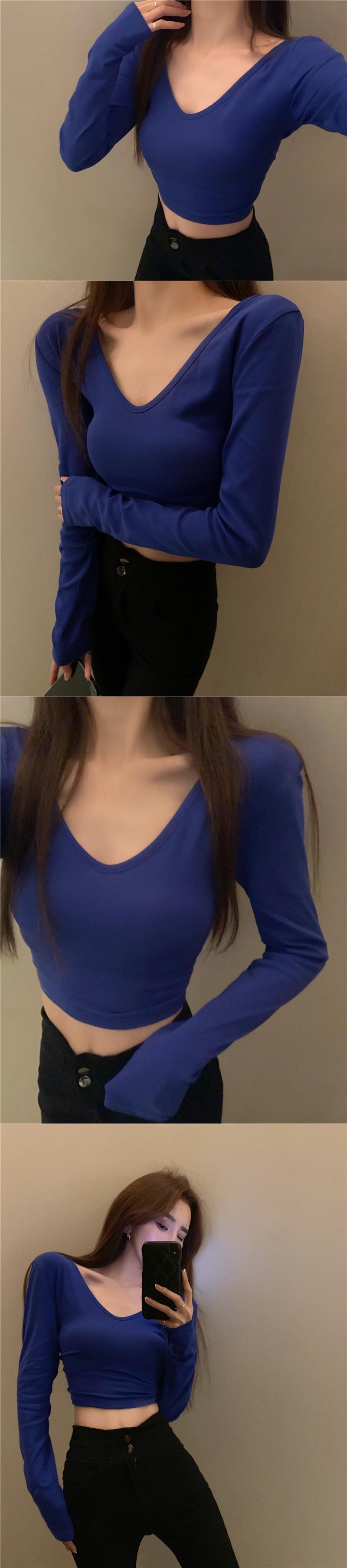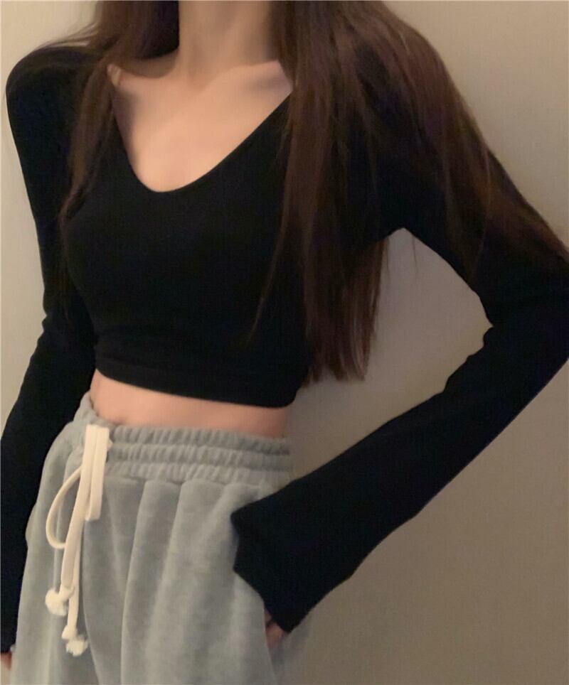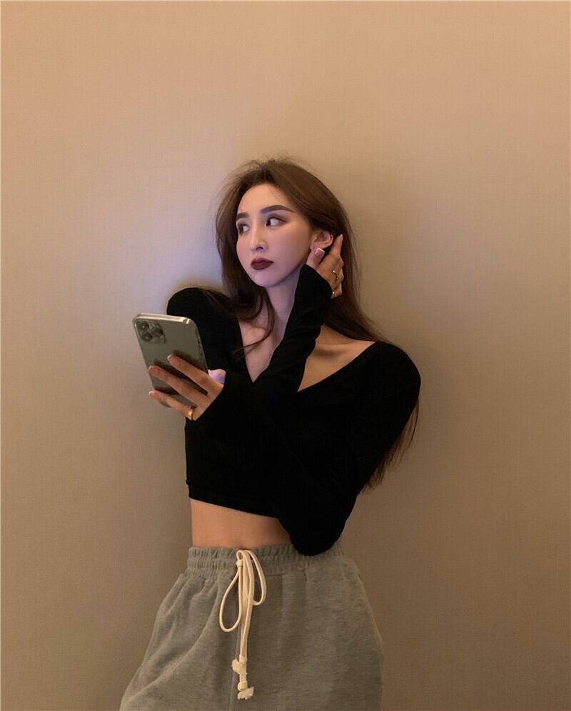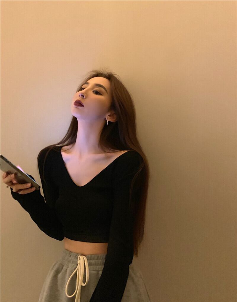 ショートトップス レディーススタイルスプリング薄手VネックブラックTシャツ シャツ ロング 春物 ヨーロピアン YY-ファッション21676140189