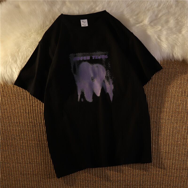 プリント柄ルーズ薄手Tシャツ サマースタイルカジュアルトップス 夏物 YY-ファッション10618876063