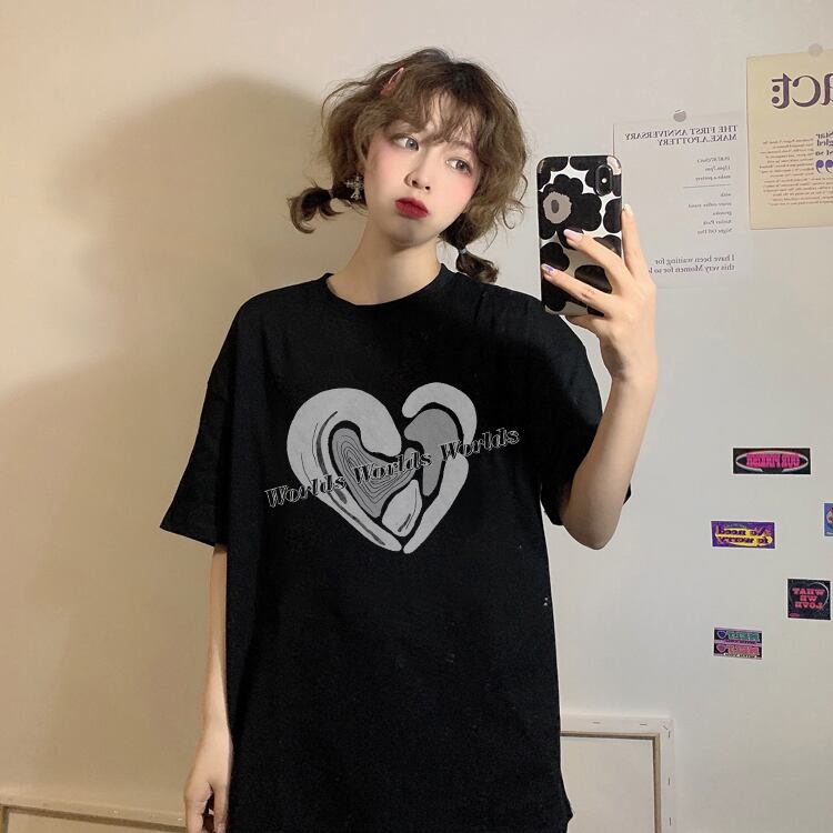 色:ブラックダークハートTシャツ,ホワイトダークハート型Tシャツ