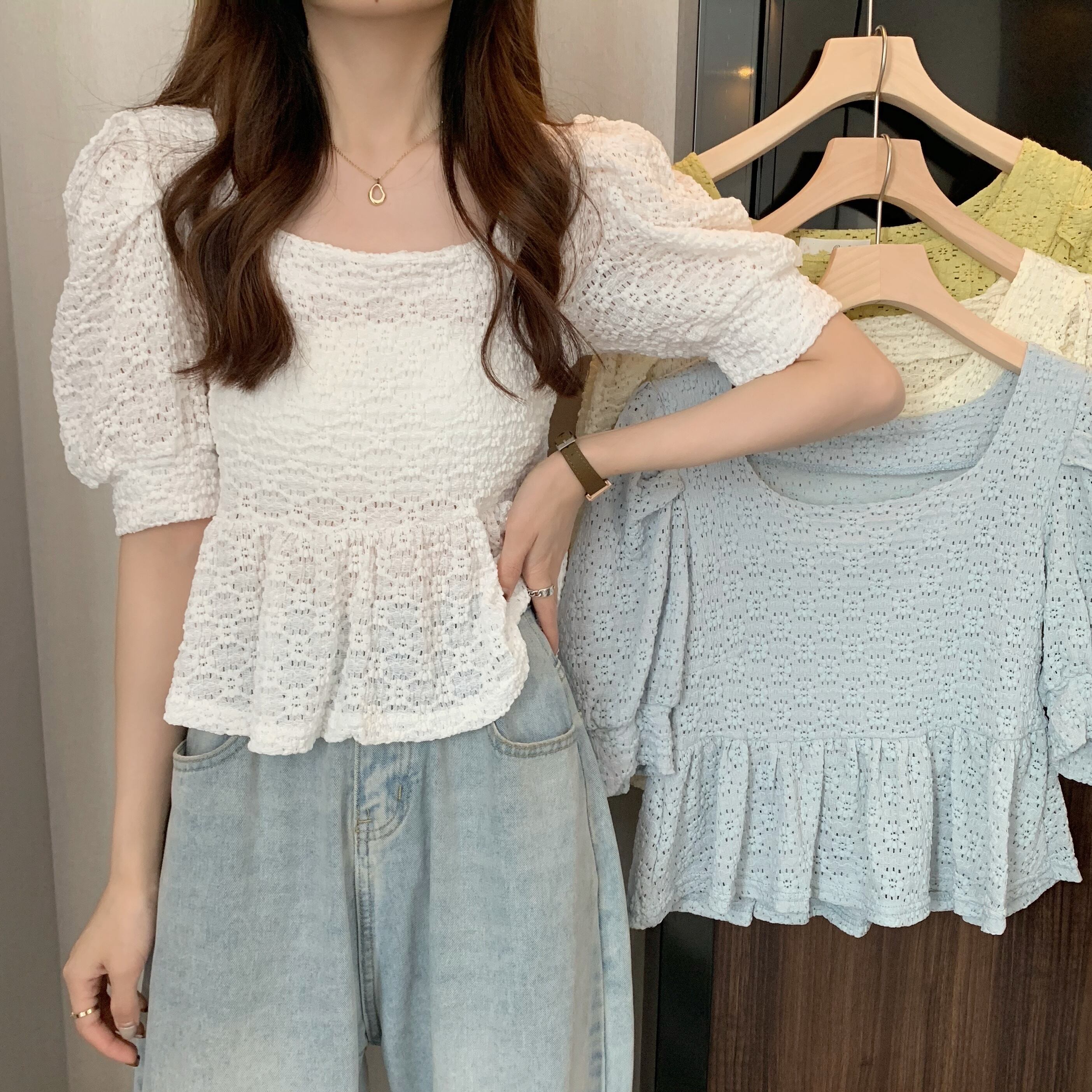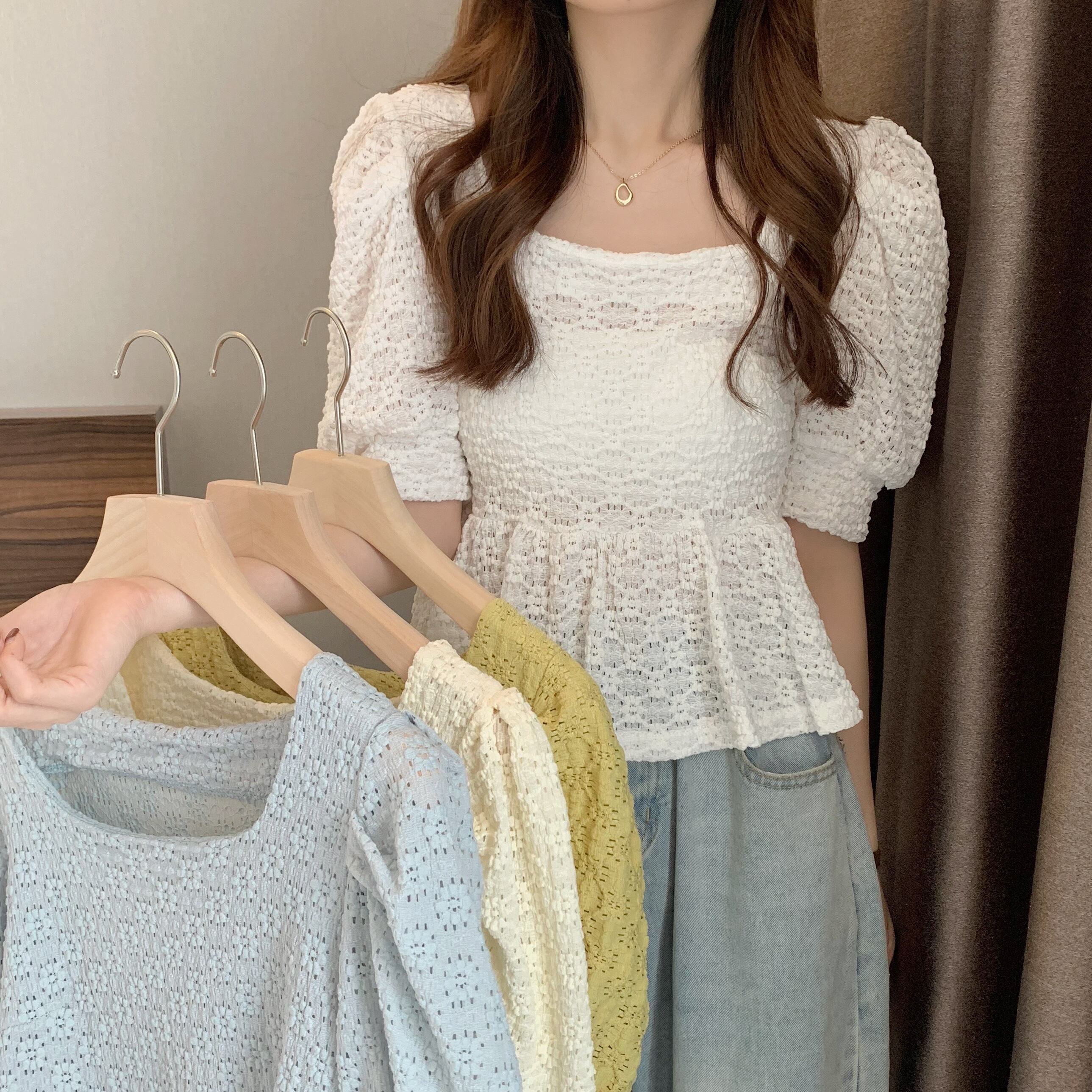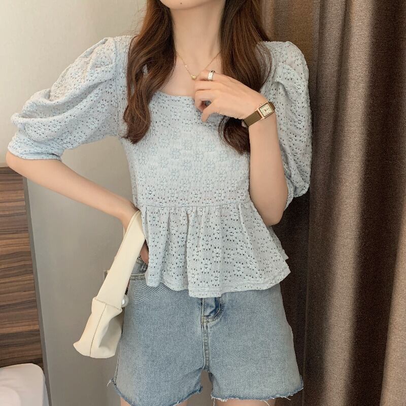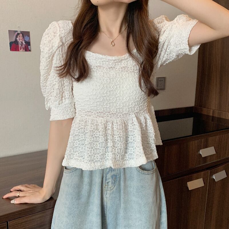 サマーシフォンレースシャツ スリム 大人ガーリー スウィート キュート カジュアル 夏物 かわいい YY-ファッション26356950529