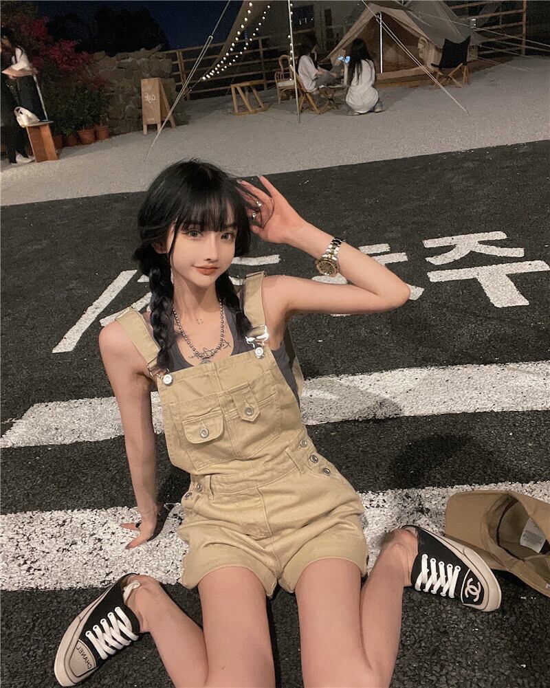 サマースリムスタンダードオーバーオール ショーツ ジャンプスーツ オールインワン レトロ 夏物 ブルマー YY-ファッション37807994519