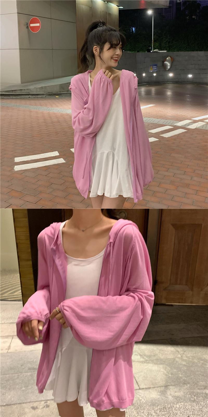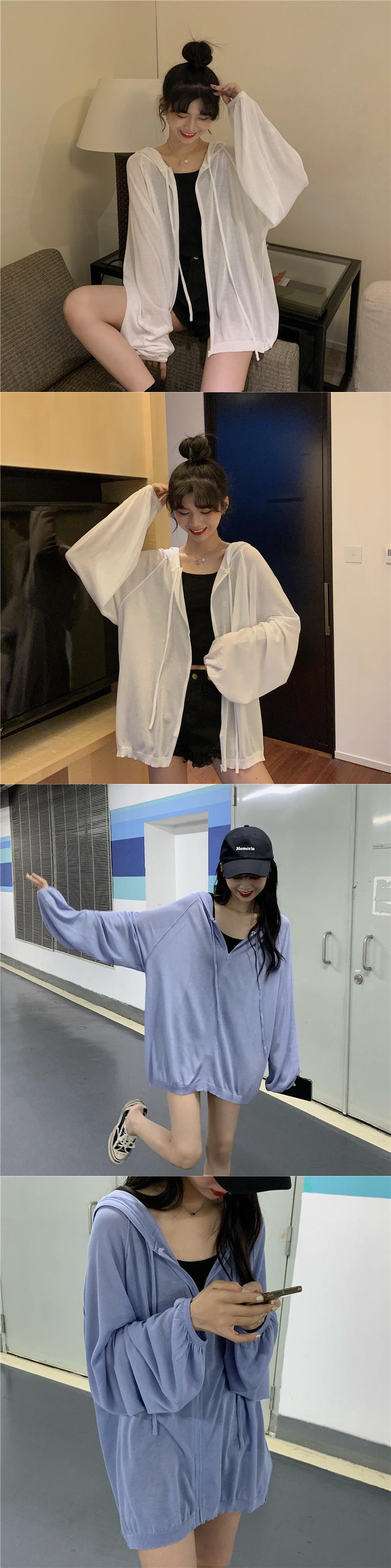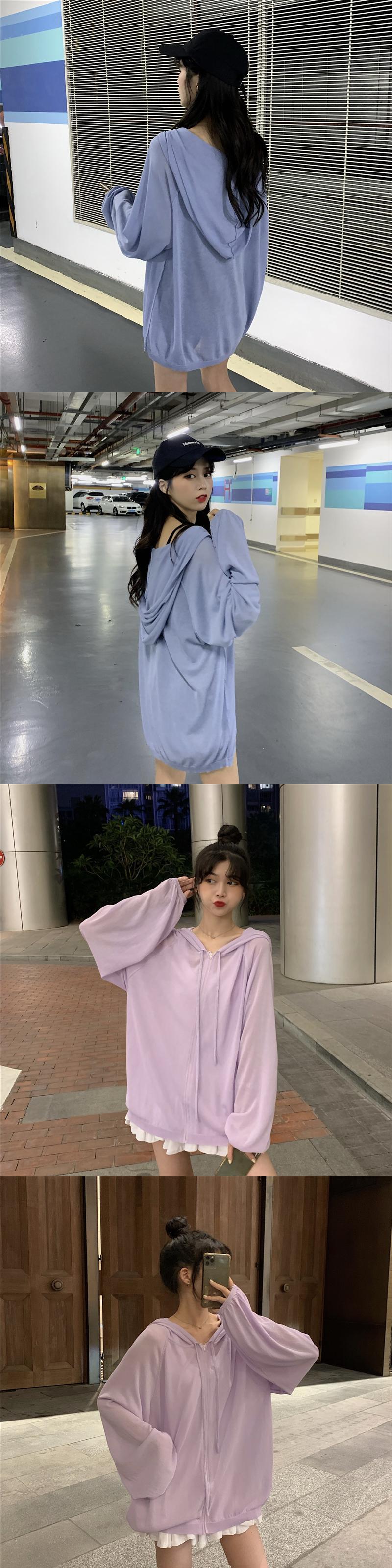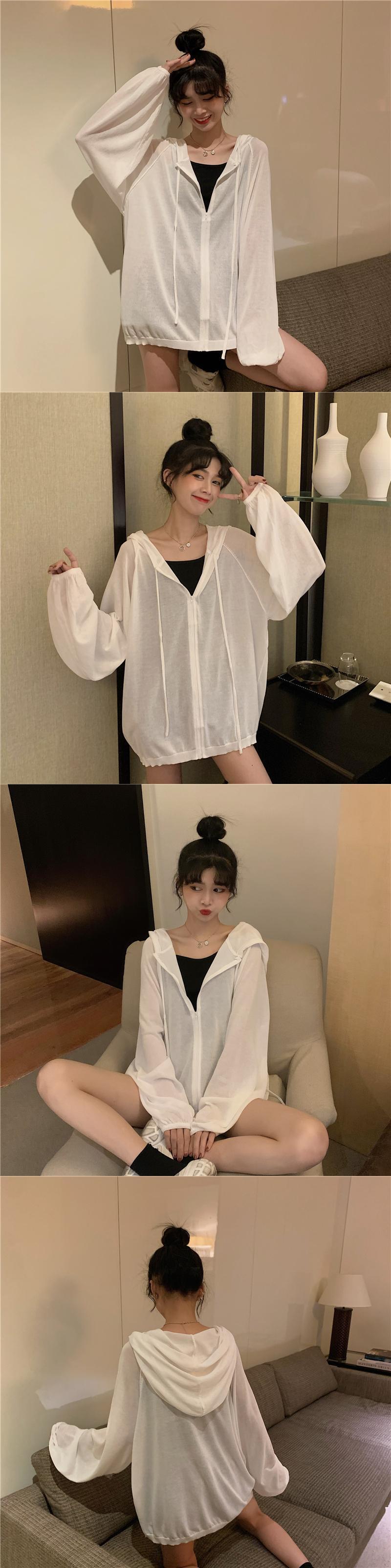 サマーカラールーズレッドフード薄手ジャケット ロング 夏物 YY-ファッション96415810722