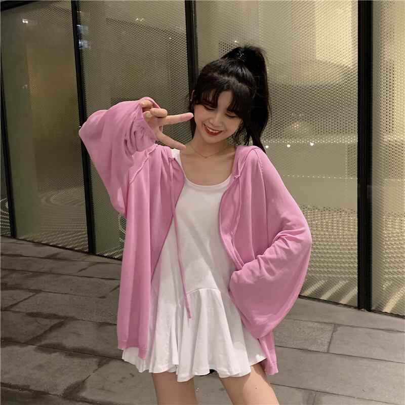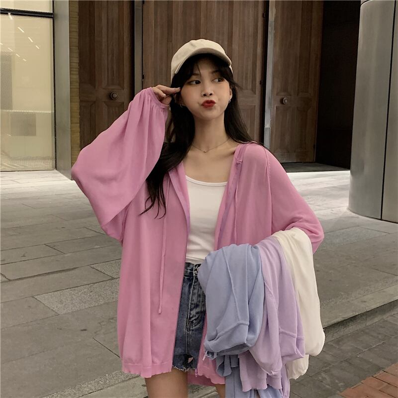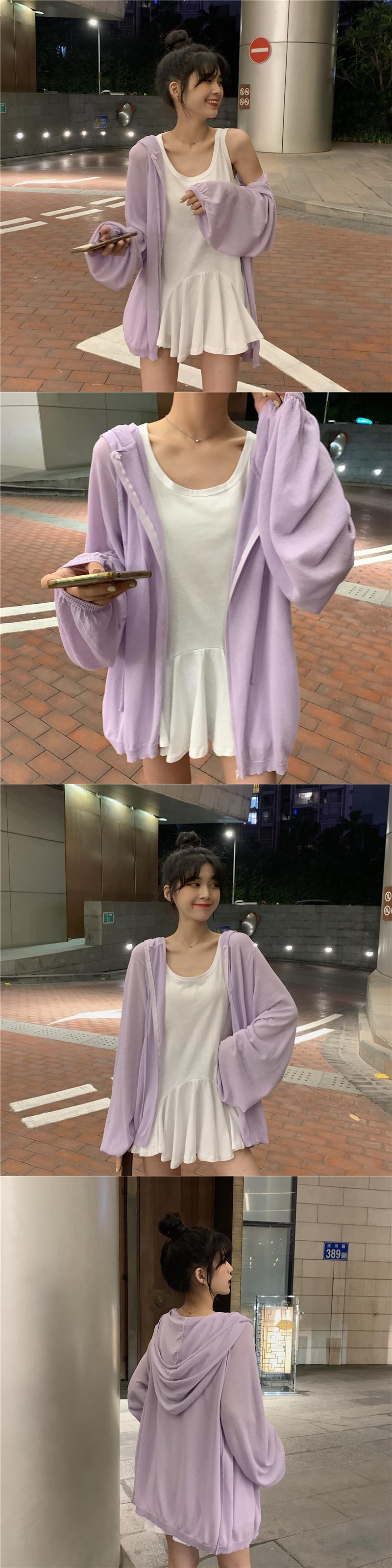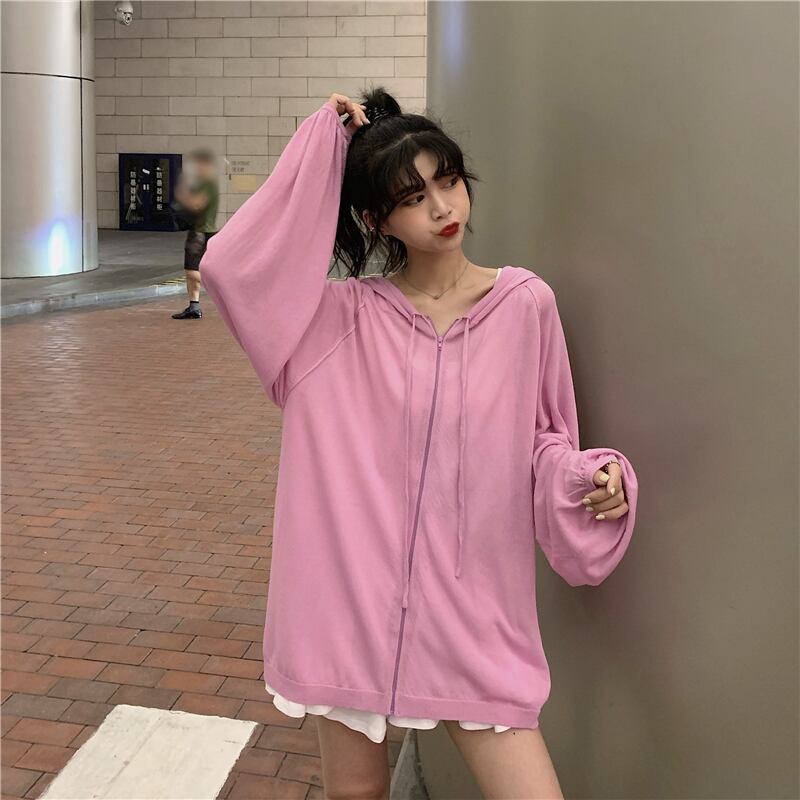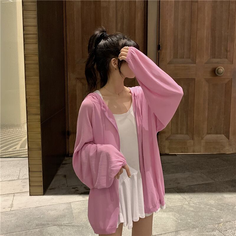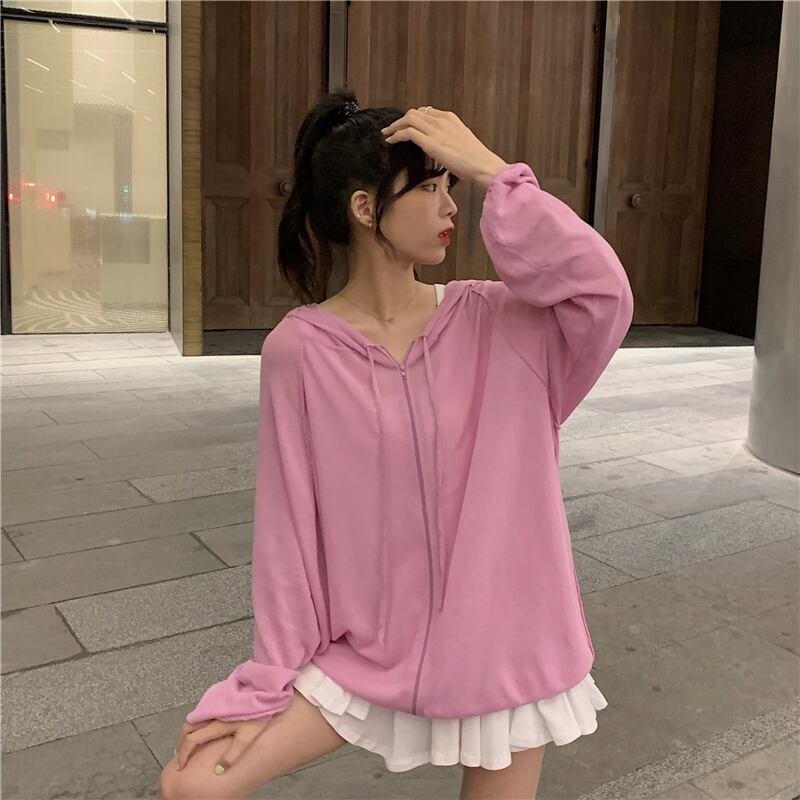サマーカラールーズレッドフード薄手ジャケット ロング 夏物 YY-ファッション96415810722