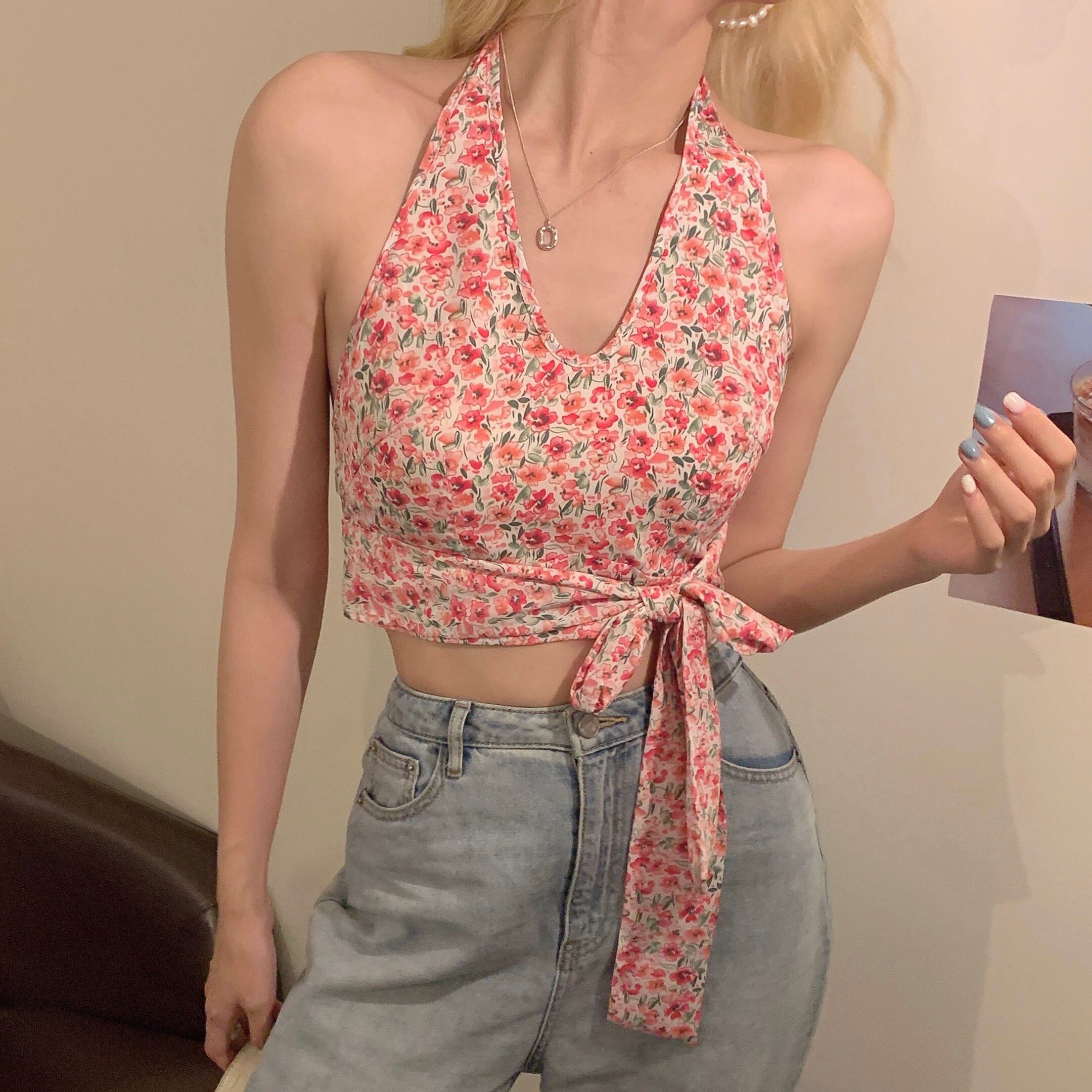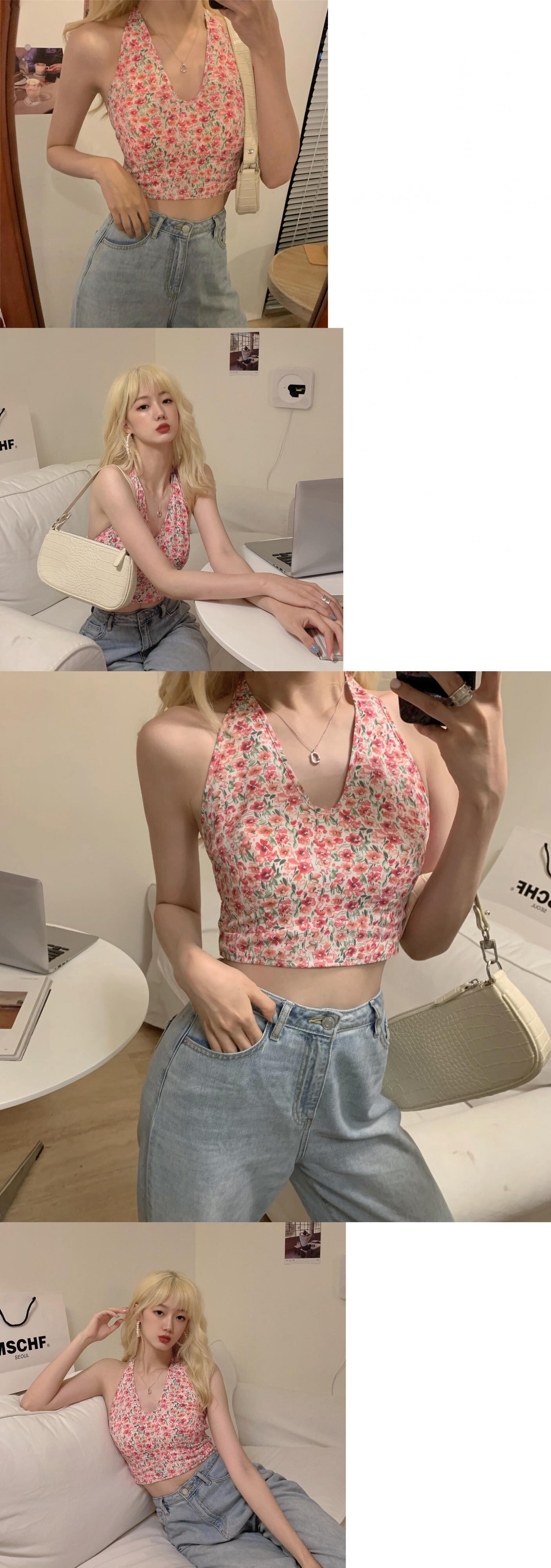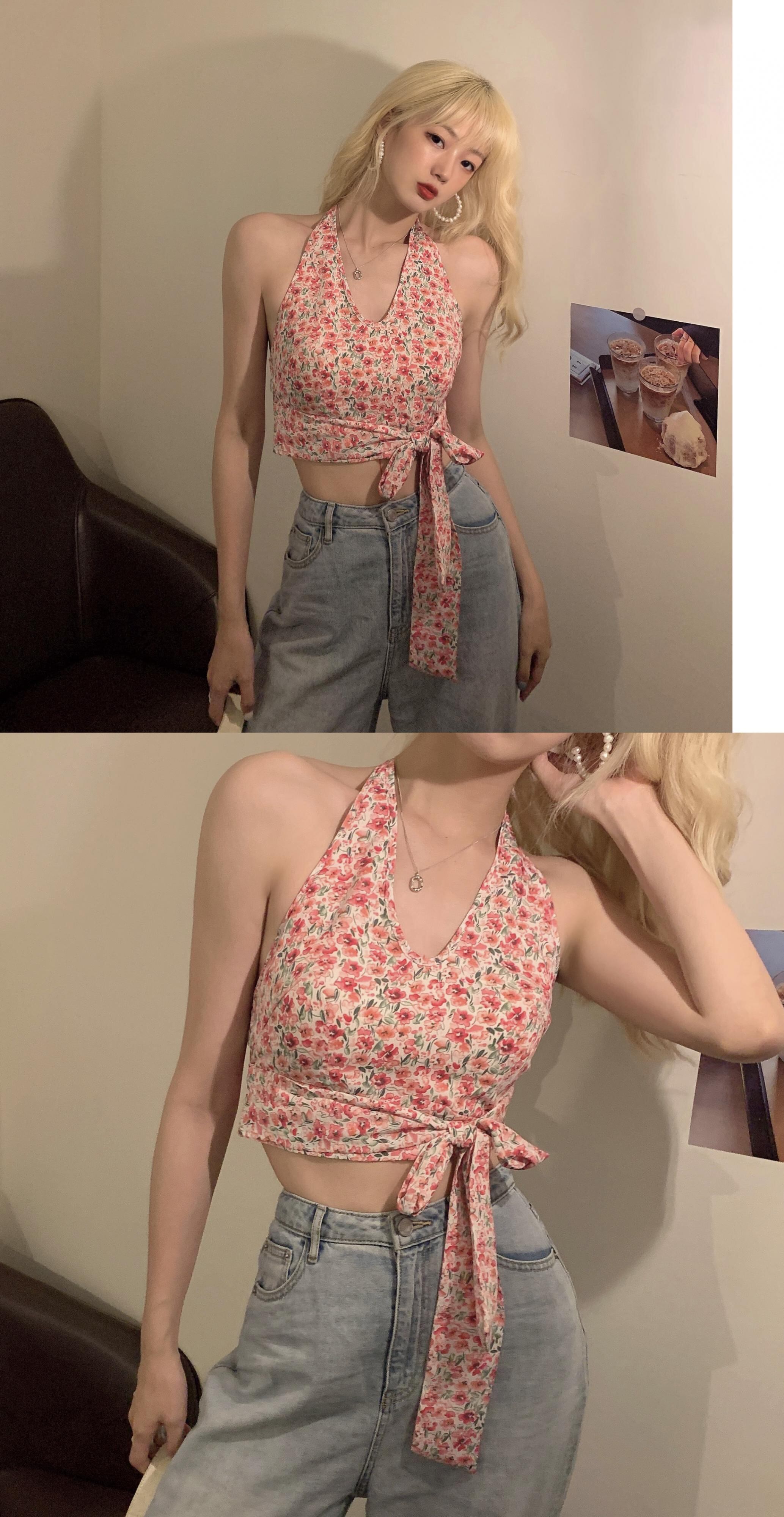 フローラルホルターショートシャツ サマージャケット 夏物 花柄 YY-ファッション13213188547