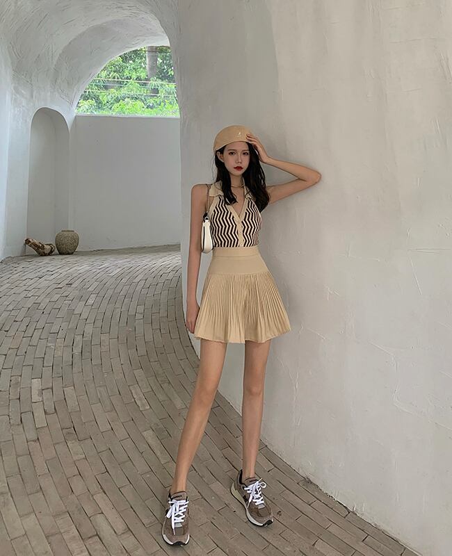 プリーツスカート ハイウェストウェストショートサマーホワイトスタイル 夏物 YY-ファッション88872292002
