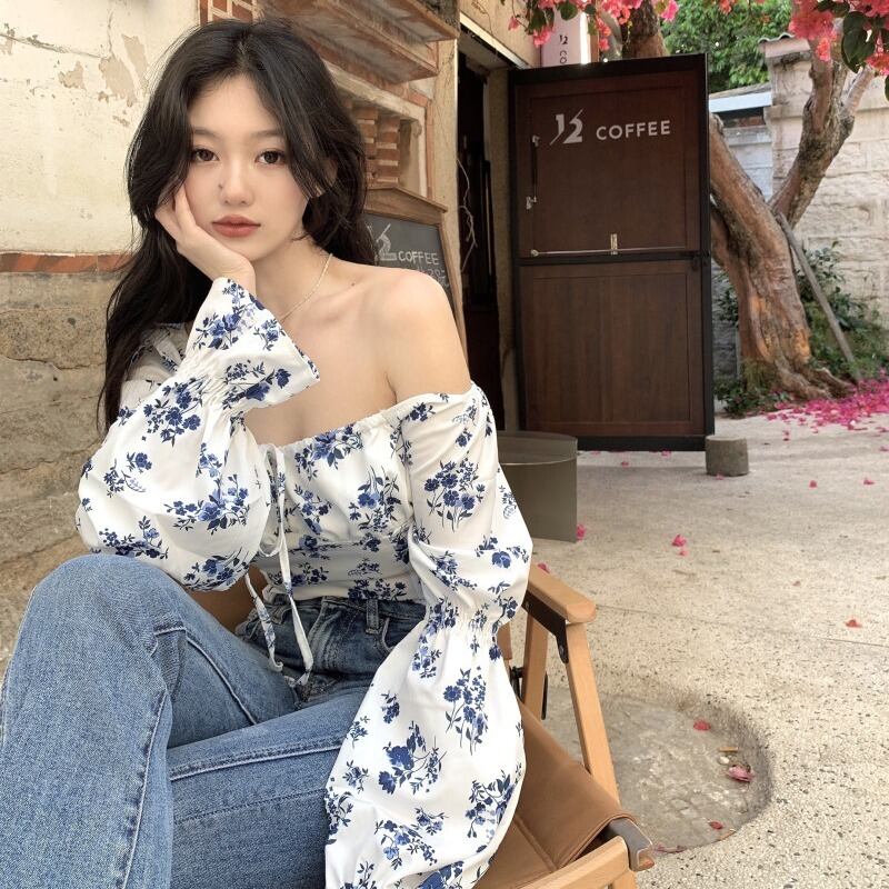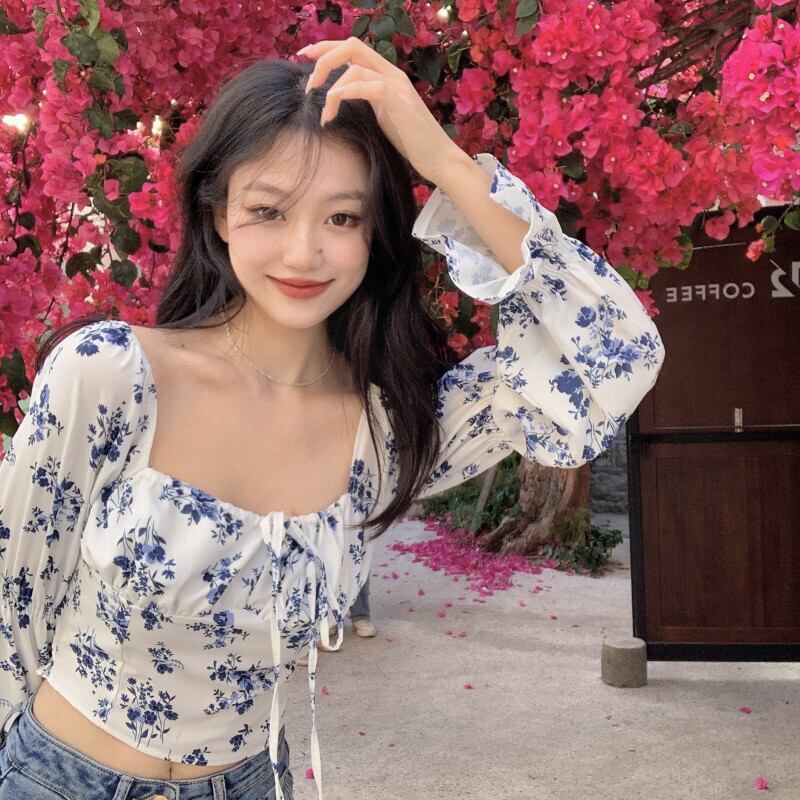 シャツ ショートフローラルサマースタンダードカラートップス ロング レトロ 夏物 花柄 スクウェア YY-ファッション56491019911