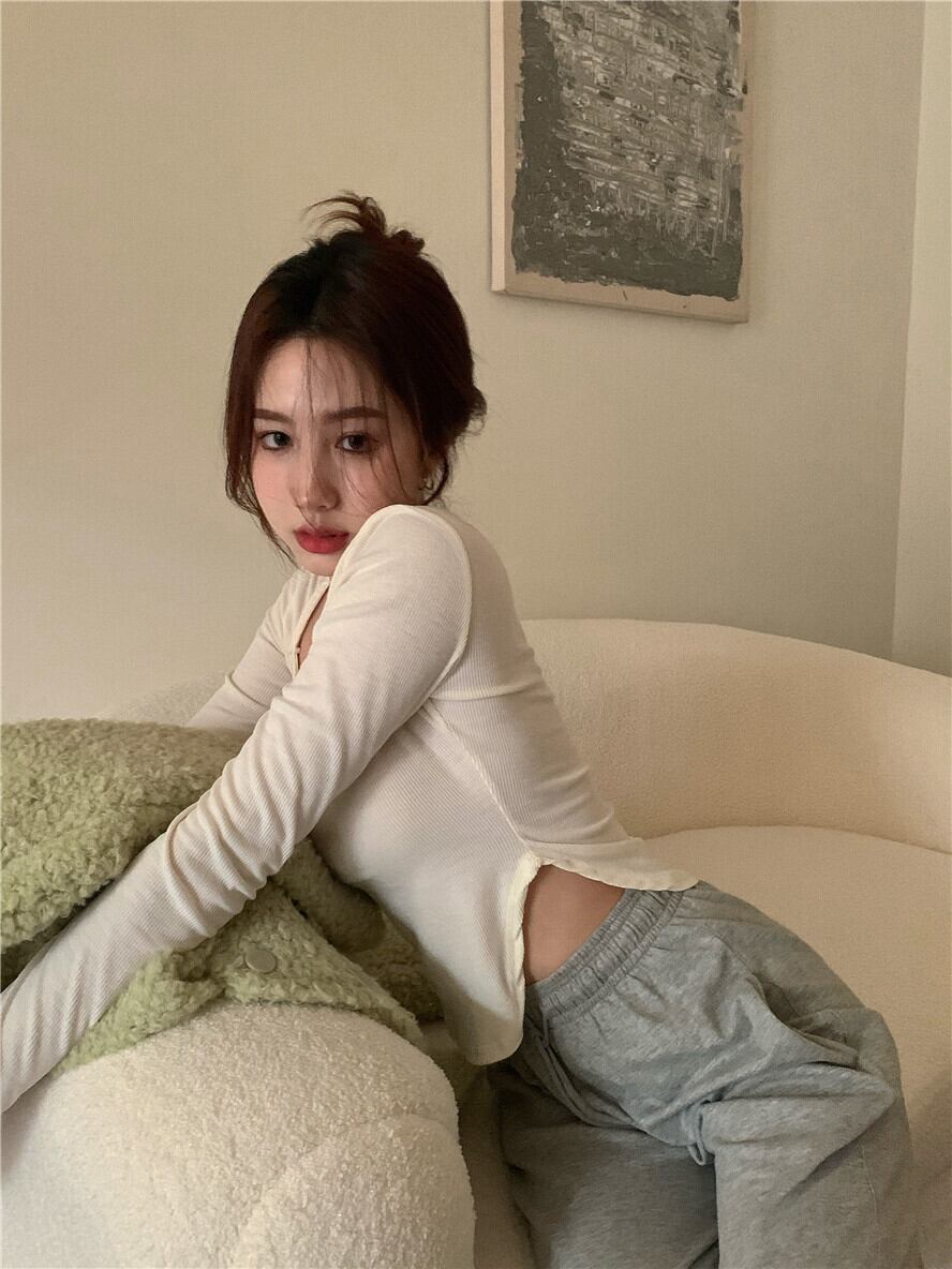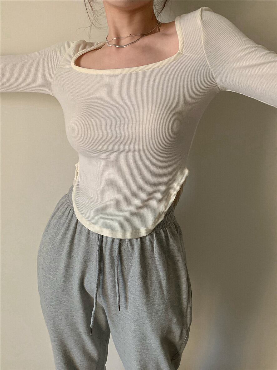 ニットTシャツ シャツ レディーススプリングサマーショートスリムトップス ロング 春物 夏物 YY-ファッション17937022763