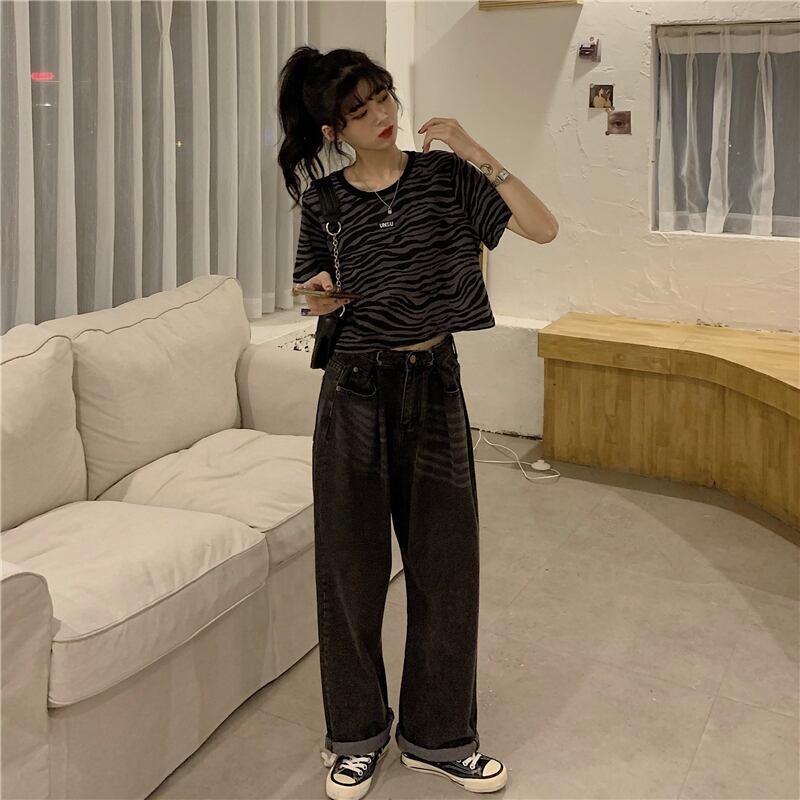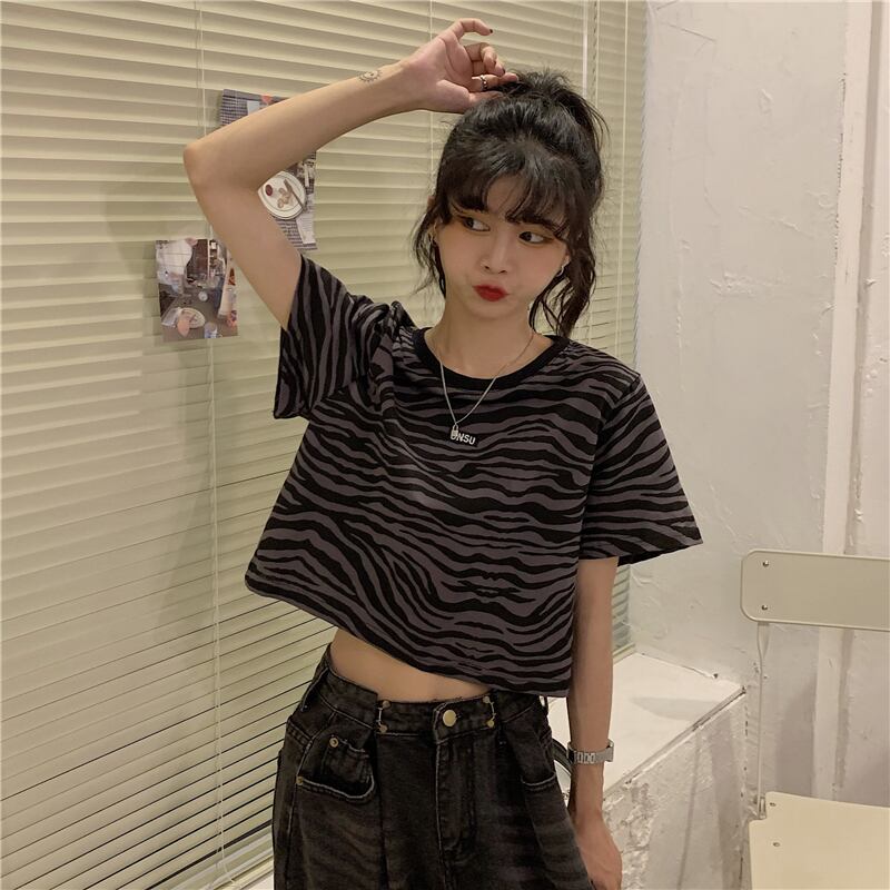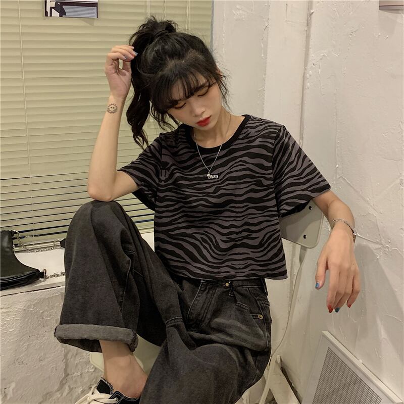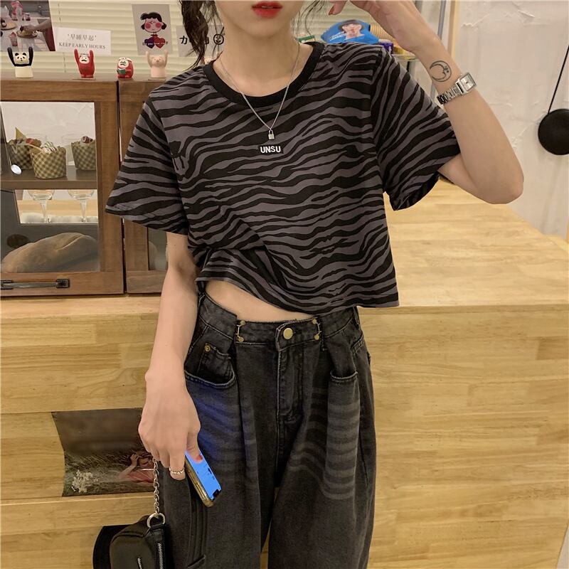 プリント柄Tシャツ スプリングサマーダークブラックショートルーズラウンドネックトップス 春物 夏物 Oネック YY-ファッション70330613163
