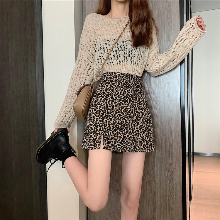 レオパードプリント柄スプリングオータムハイウェストウェストAラインスカート スタイルショートサマー 春物 夏物 秋物 YY-ファッション84895443132