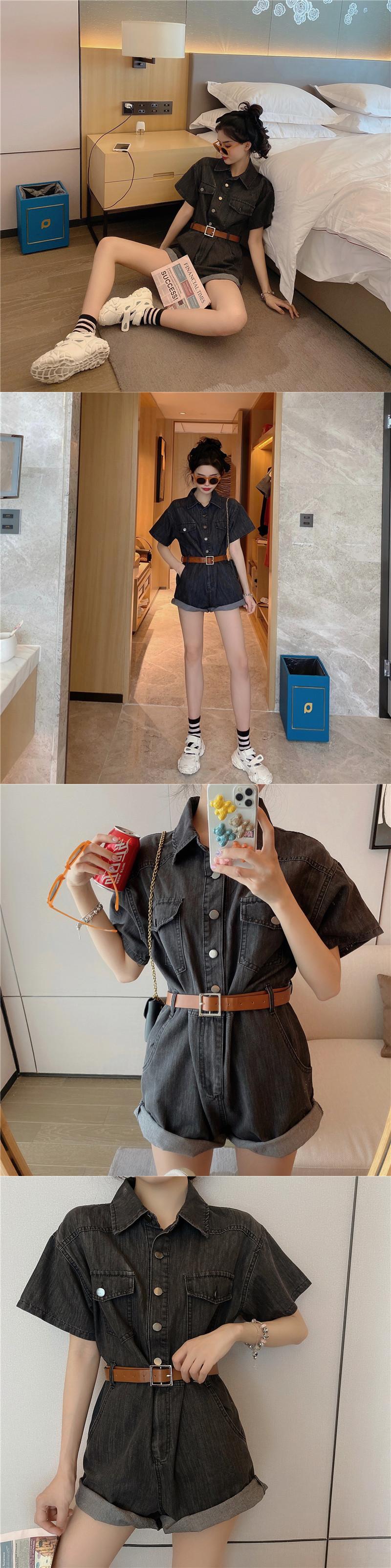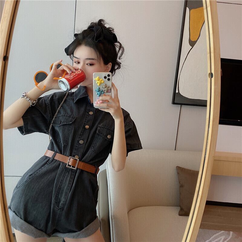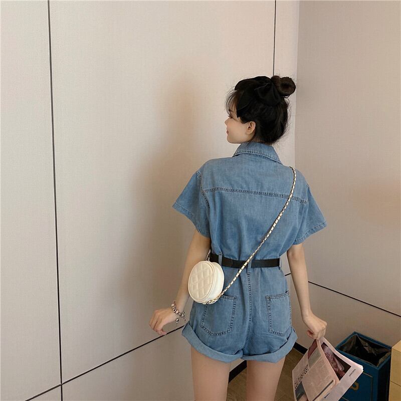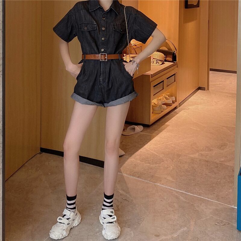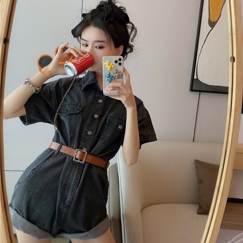 サマースタイルスタンダードショーツ ルーズカジュアルジャンプスーツ オールインワン ベルト レディース レトロ 夏物 ハーネス ブルマー YY-ファッション89924646396