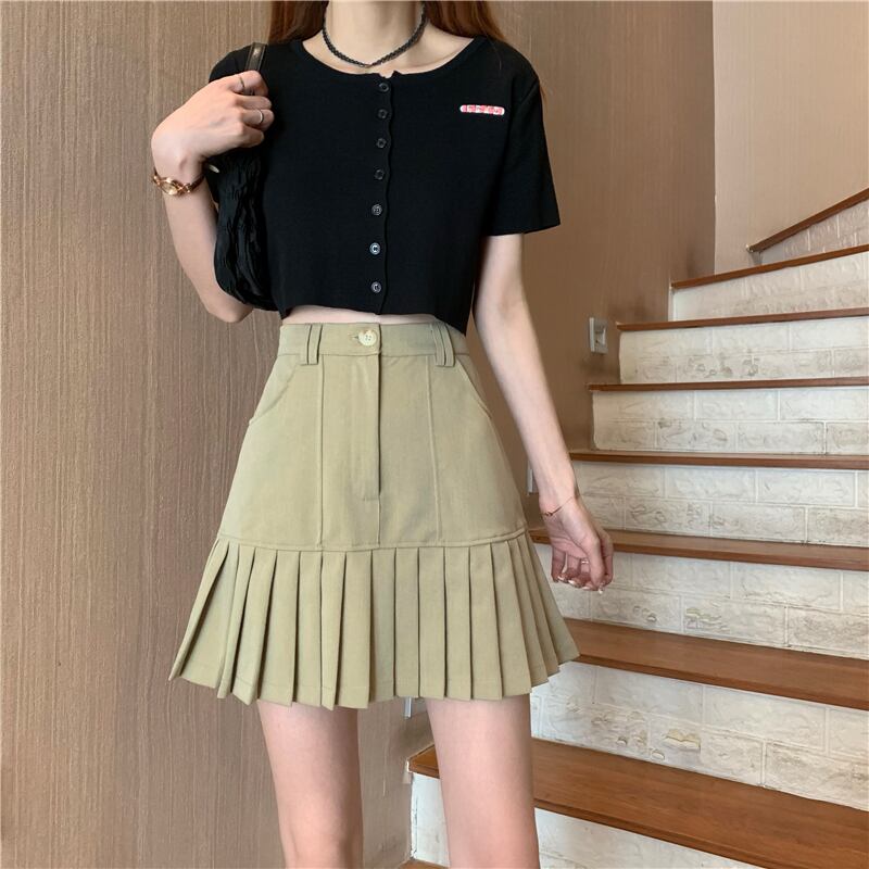 Aラインスカート サマーハイウェストウェスト薄手プリーツショート 大人ガーリー スウィート キュート カジュアル 夏物 YY-ファッション84264171170