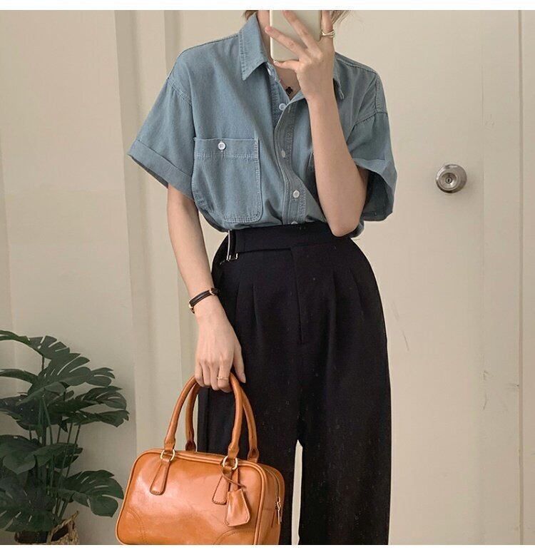 サマースタンダードカラーシャツ ルーズ薄手トップス レトロ 夏物 YY-ファッション96140558972