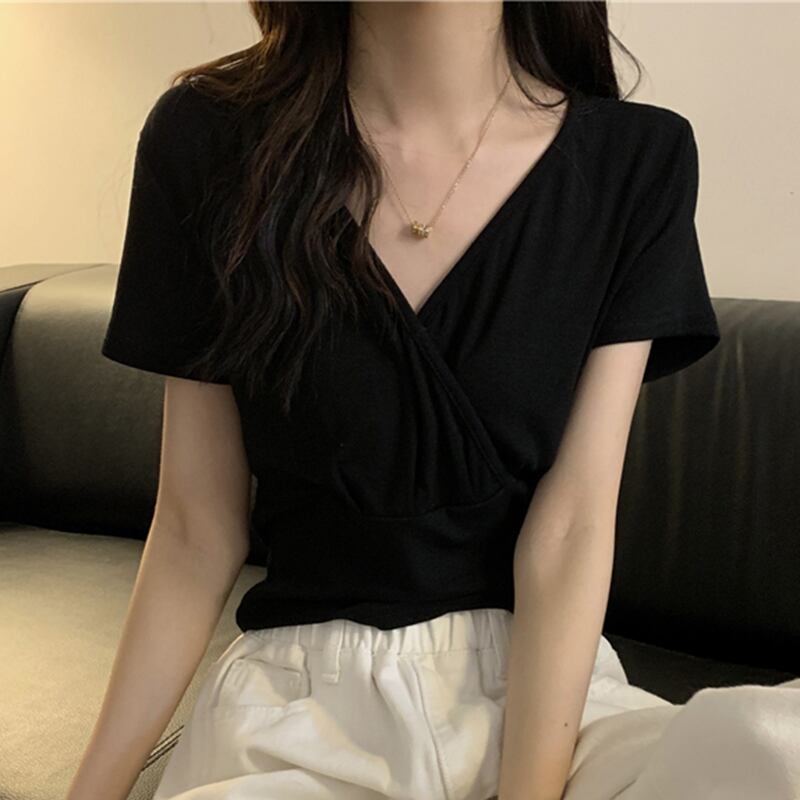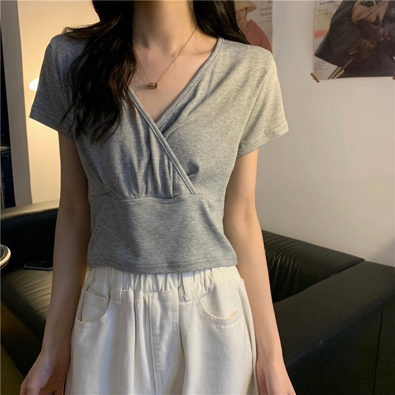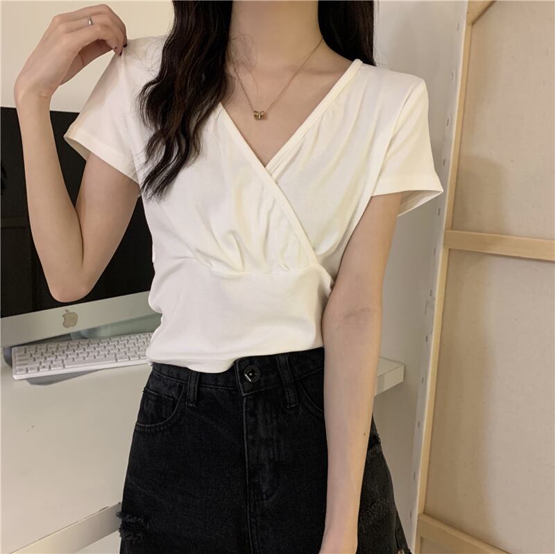 クロスショートTシャツ サマー薄手トップス 夏物 YY-ファッション1189302348