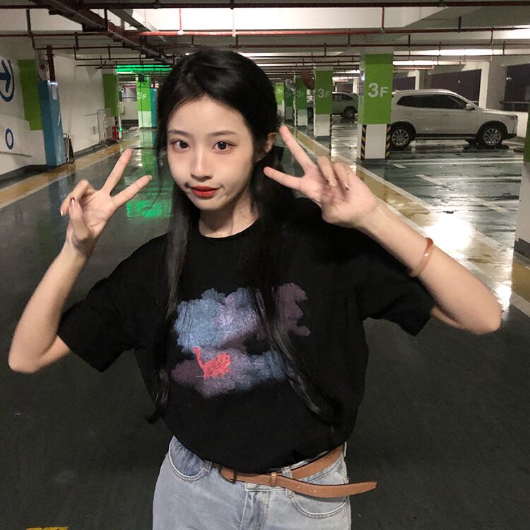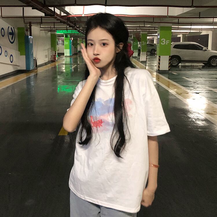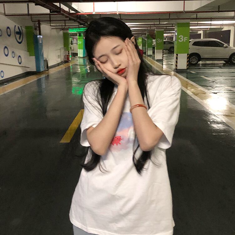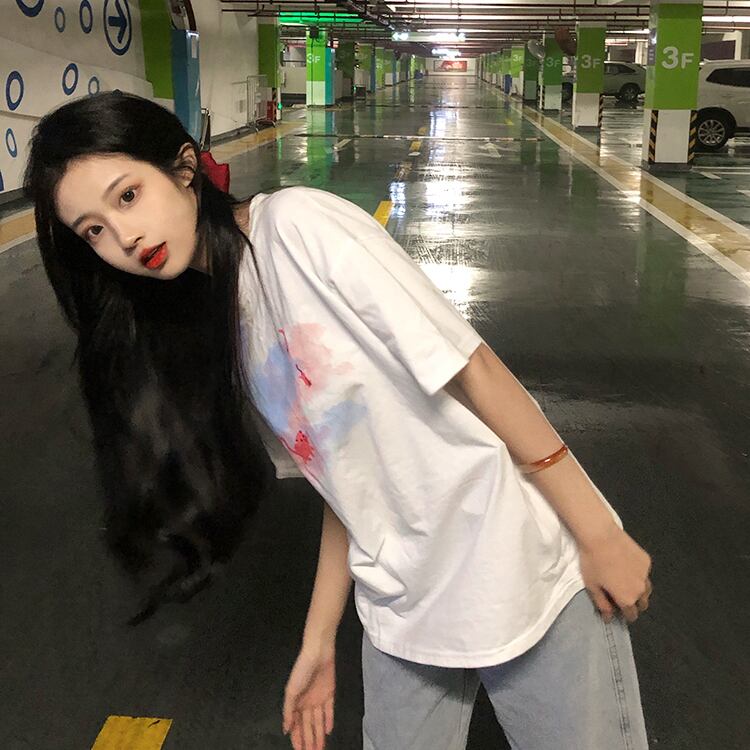 サマールーズカジュアルシャツ レッドプリントTシャツ レディース 夏物 YY-ファッション84813719365