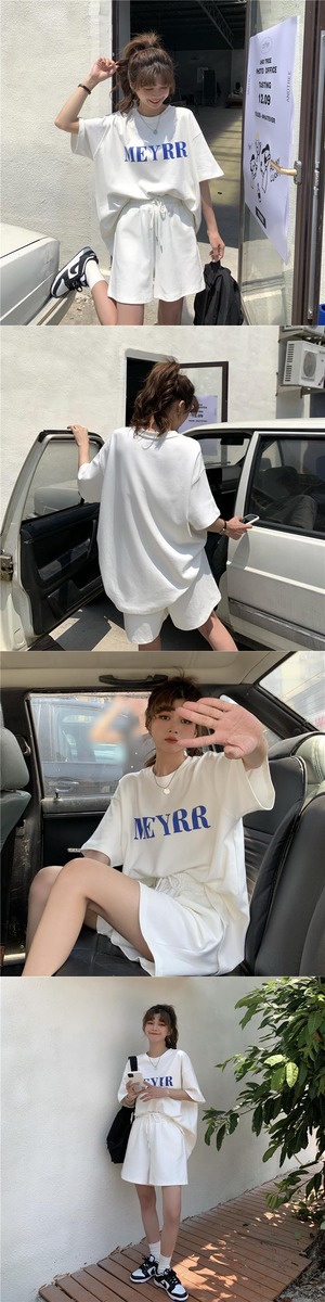 サマールーズプリントTシャツ ハイウェストウェストショーツ 夏物 ブルマー YY-ファッション98507630065