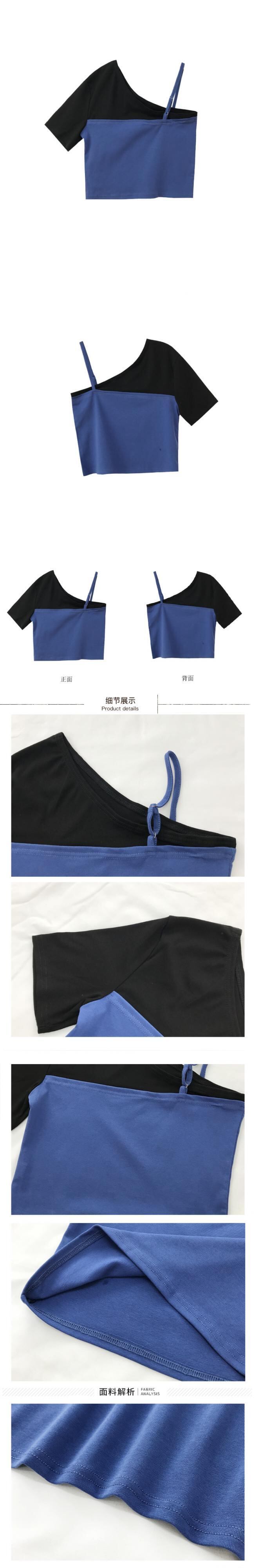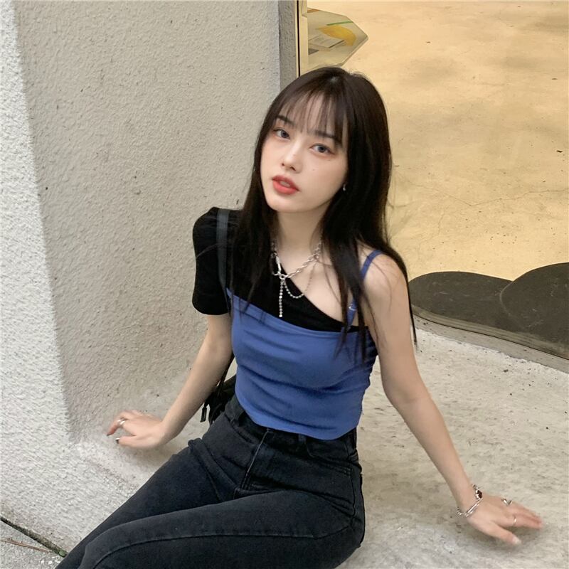 カラーTシャツ サマーブラックストラップレスショートトップス 夏物 YY-ファッション53656545312