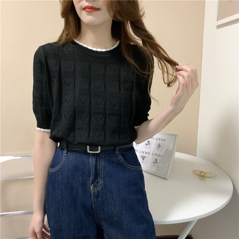 サマーニットセーター ルーズ薄手Tシャツ トップス 夏物 YY-ファッション79906700802