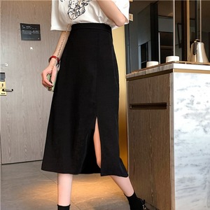 カラースカート サマースリットハイウェストウェストAライン薄手 夏物 YY-ファッション56571216235