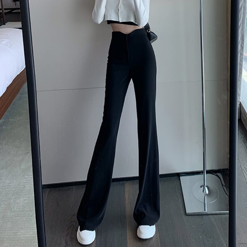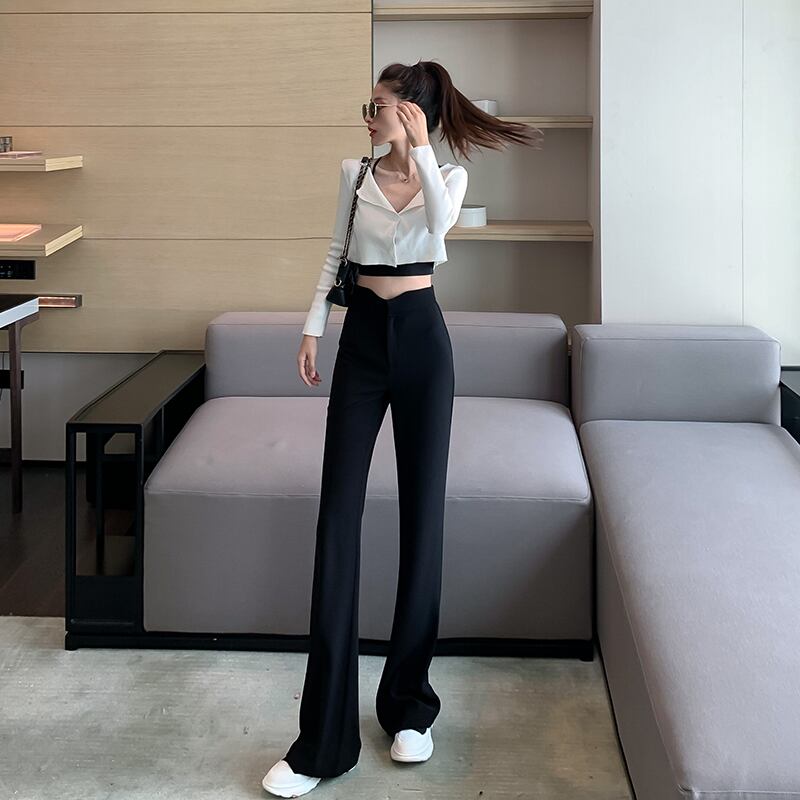 パンツ サマーワイドレッグ薄手ルーズハイウェストウェストカジュアルブラック レッド 夏物 ワイドパンツ YY-ファッション42962579464