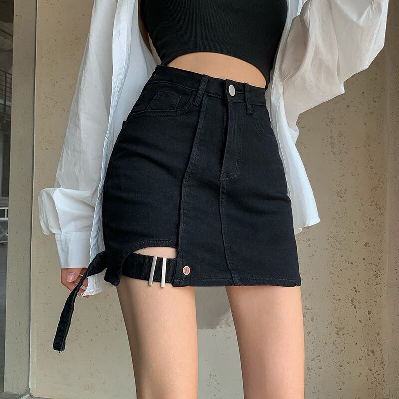 スカート ハイウェストウェストショートサマーブラックAライン 夏物 YY-ファッション92089299426