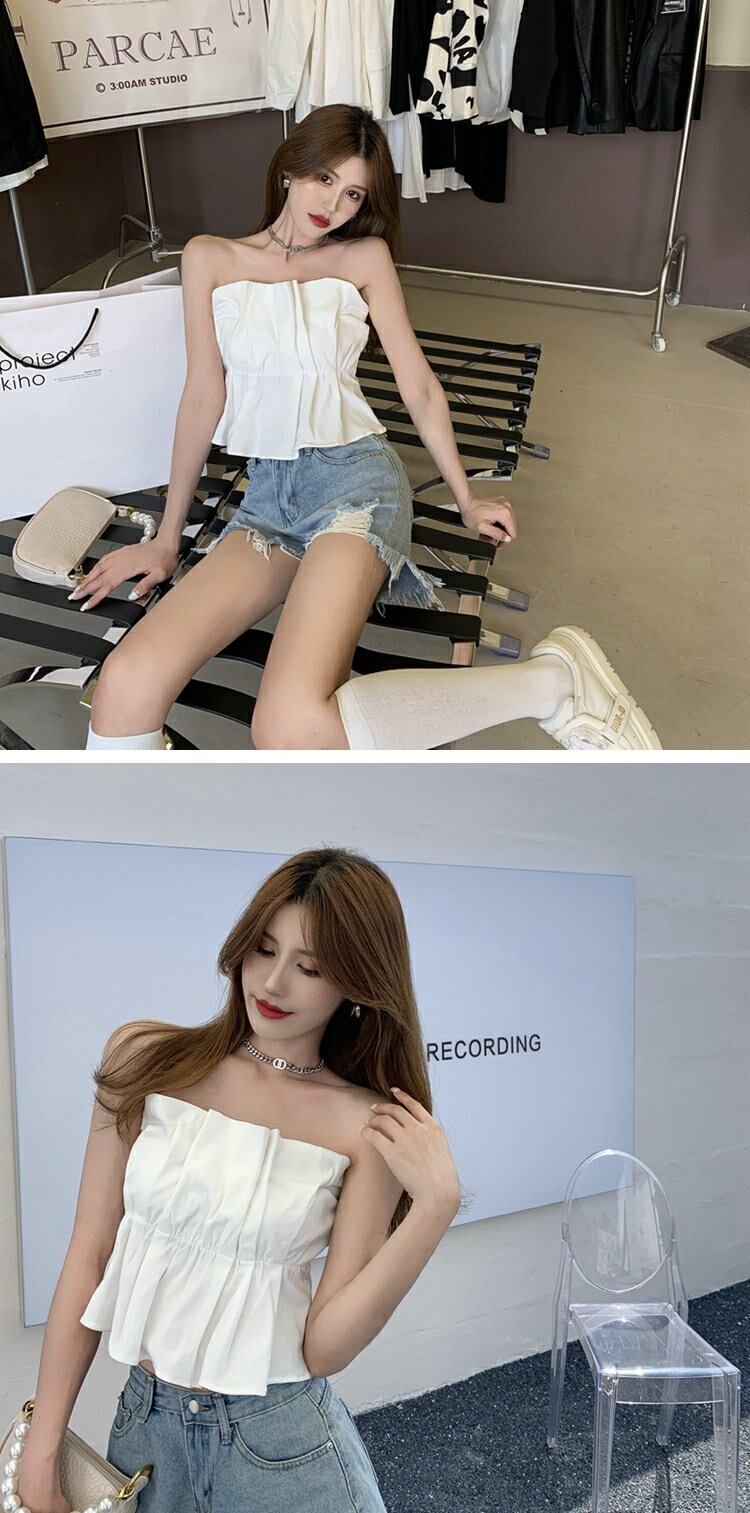 トップス サマーホワイトプリーツ 夏物 YY-ファッション55207879734