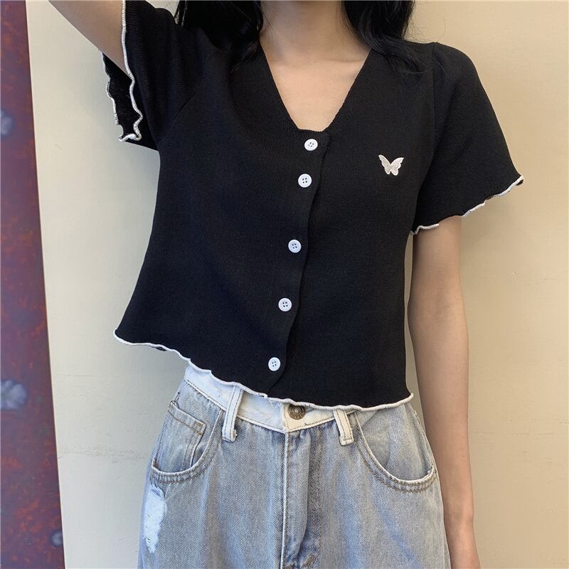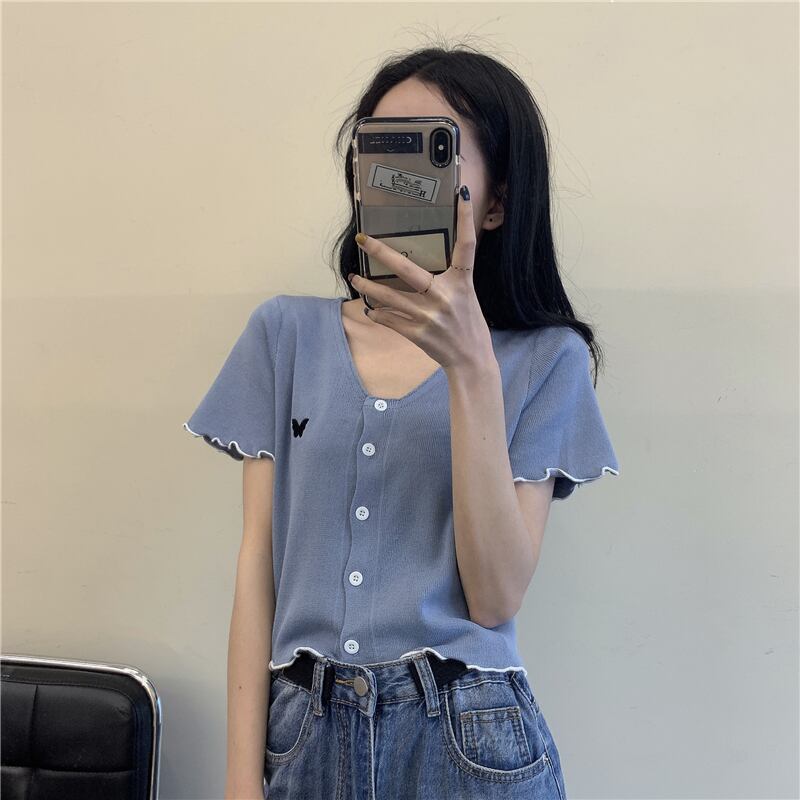 ショートVネックニット 半袖 ハーフスリーブ カーディガン シルク YY-ファッション83370014931