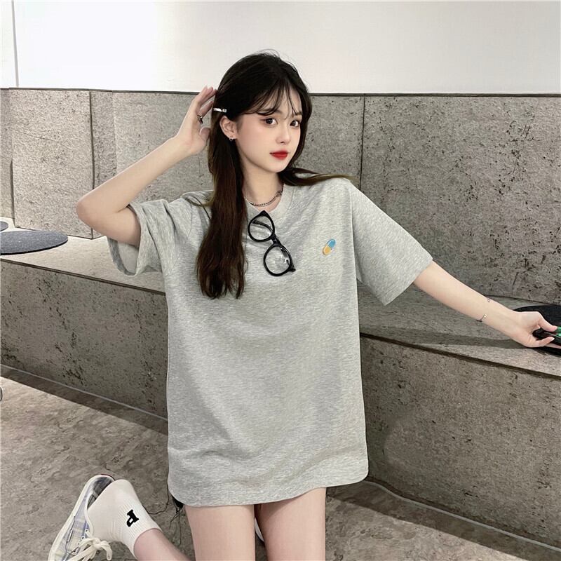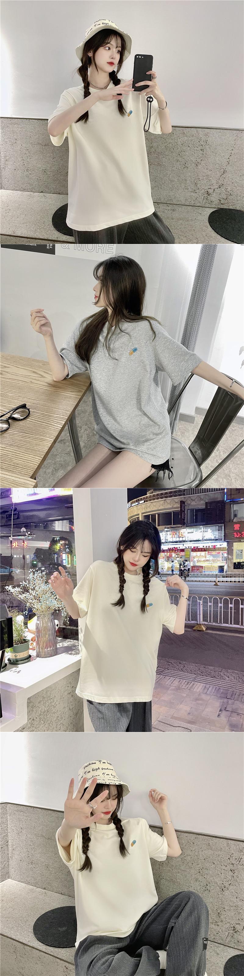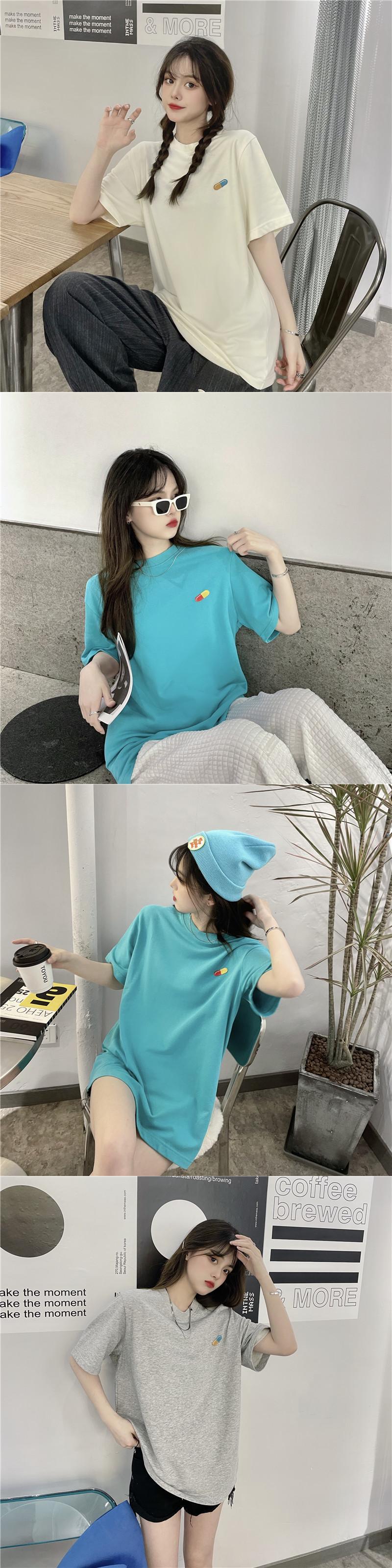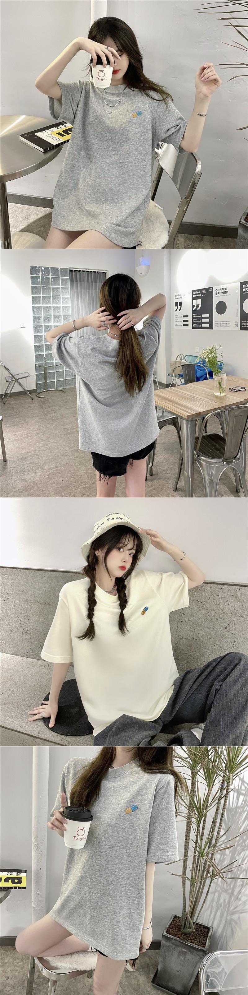 サマーレッドルーズラウンドネックTシャツ シャツ 夏物 Oネック YY-ファッション24927262330