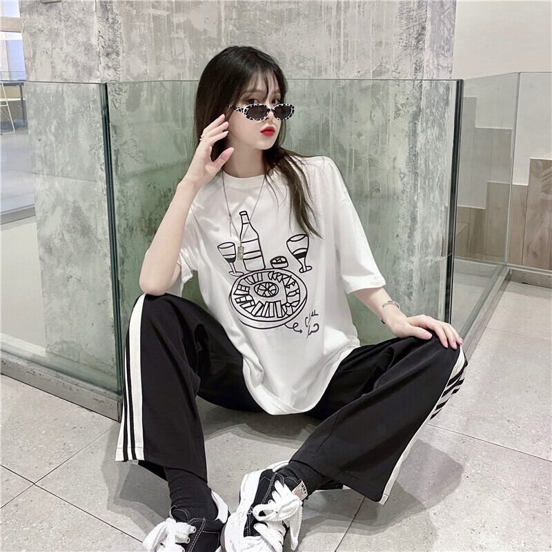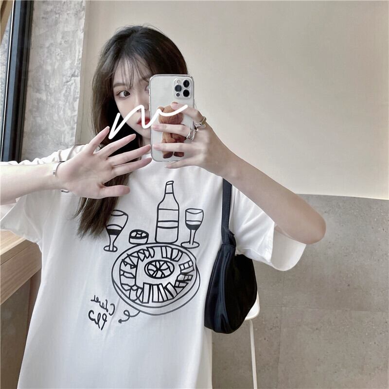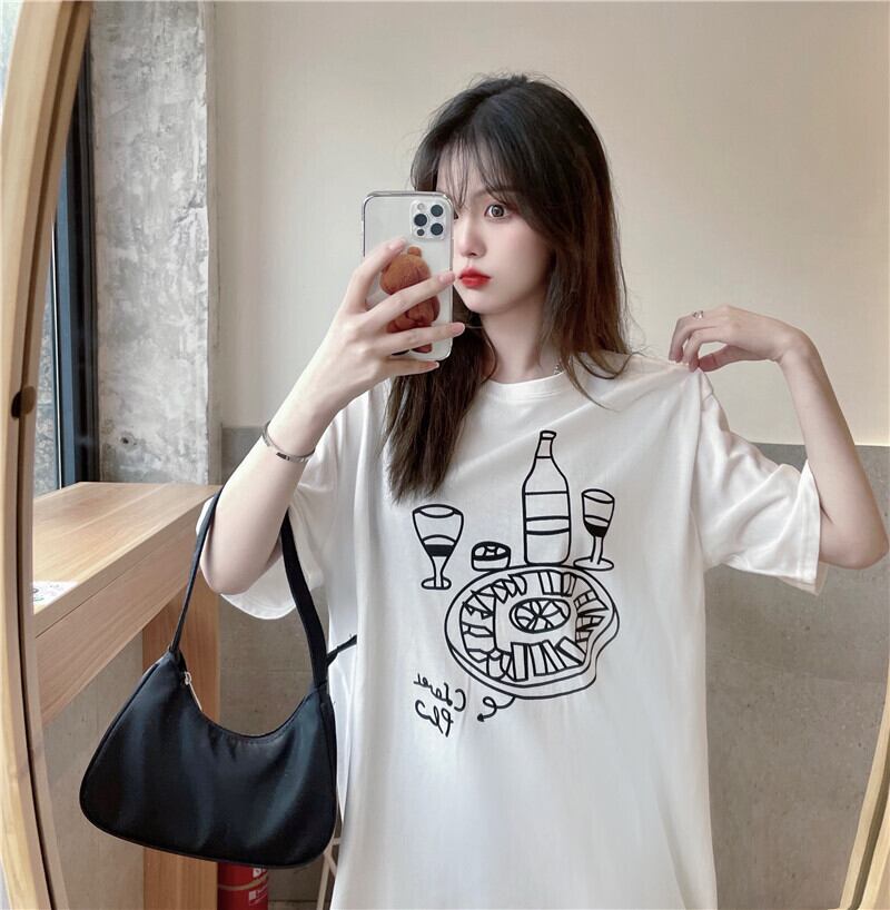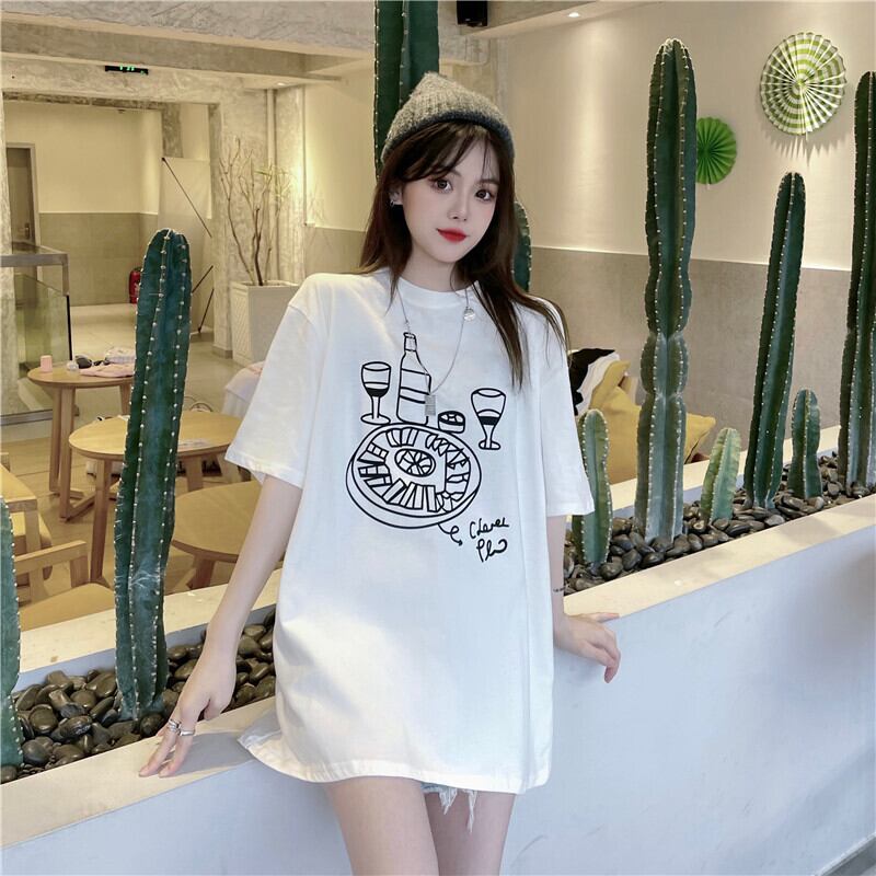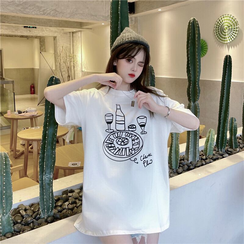 Tシャツ レディースサマーレッドルーズ薄手プリント柄トップス 夏物 YY-ファッション9226597608