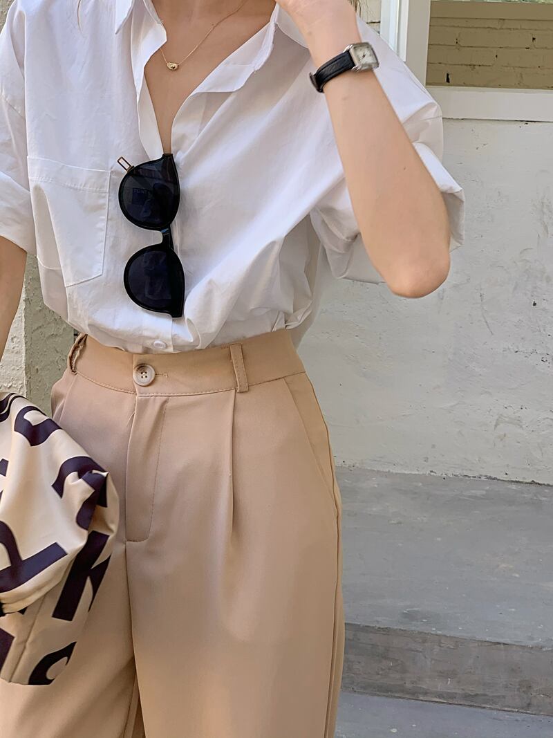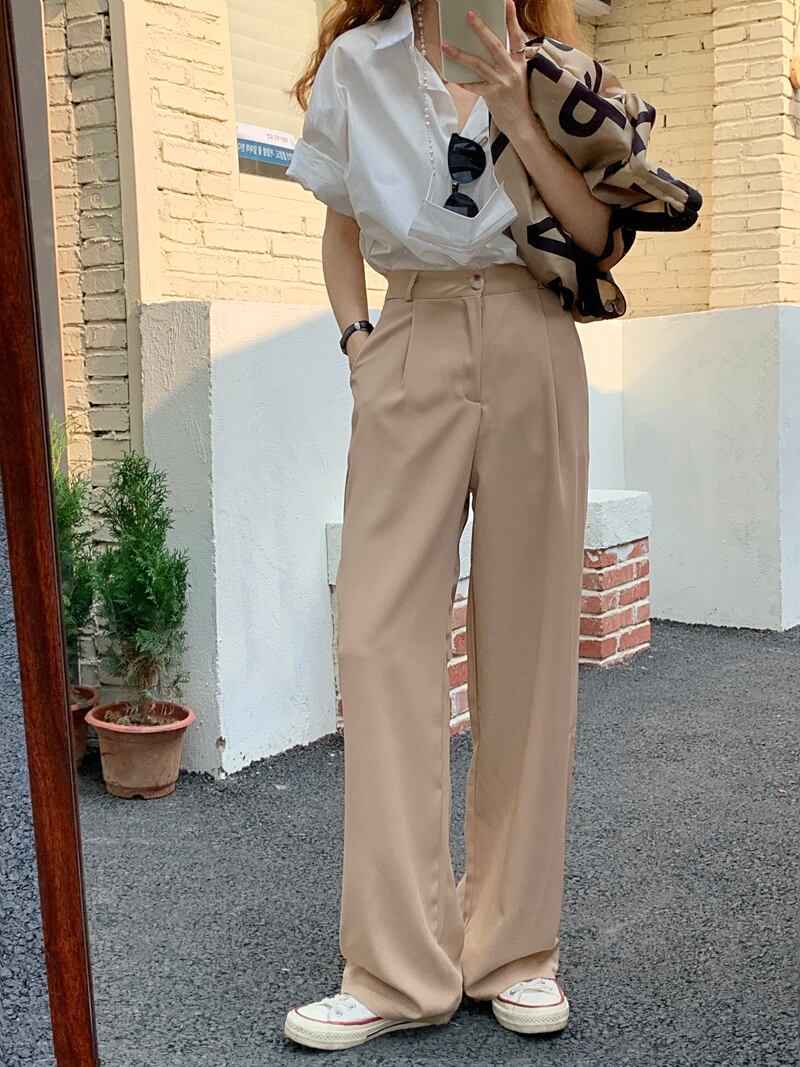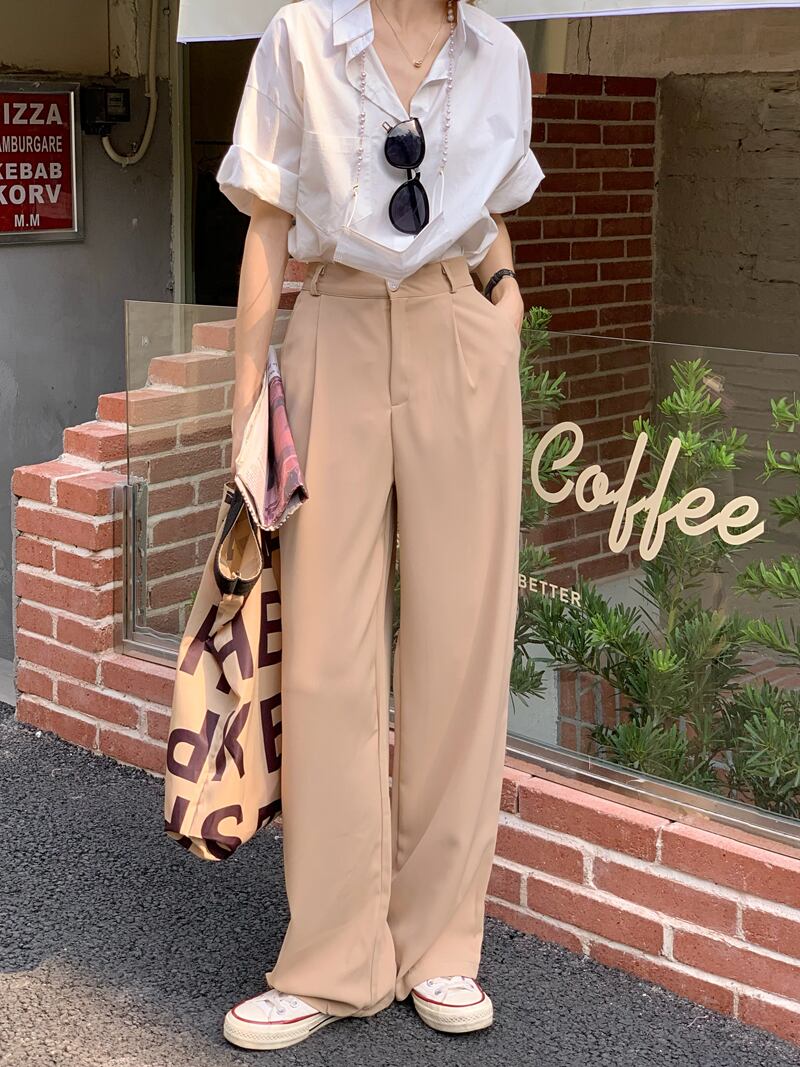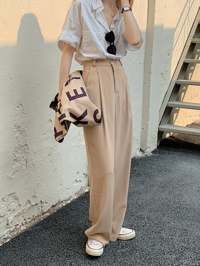 カジュアルパンツ レディースサマースタイルハイウェストウェストルーズワイドレッグ 夏物 ワイドパンツ YY-ファッション37558001870