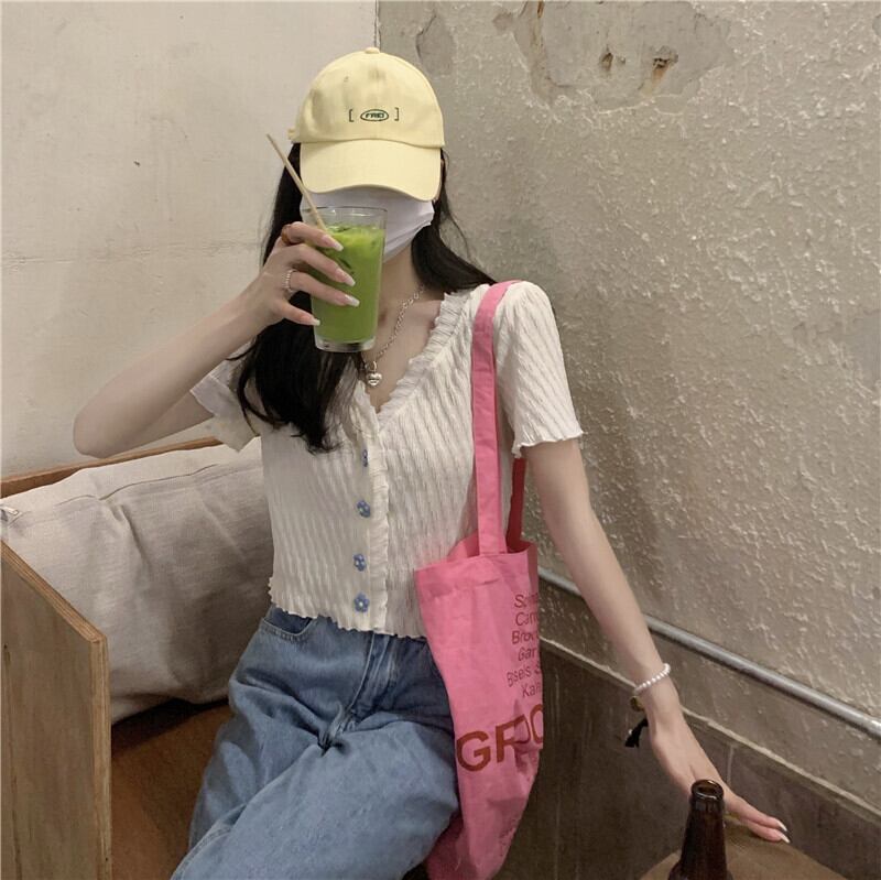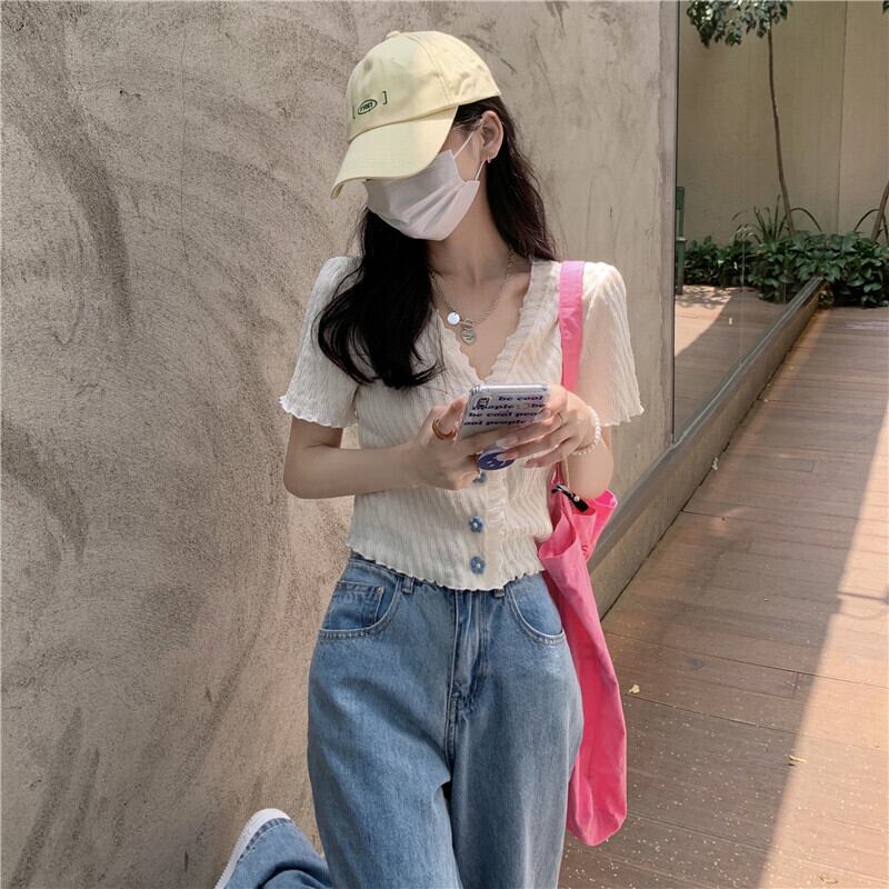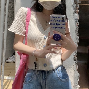 ショートトップス サマー薄手スリムVネックセーター 夏物 YY-ファッション71592338881
