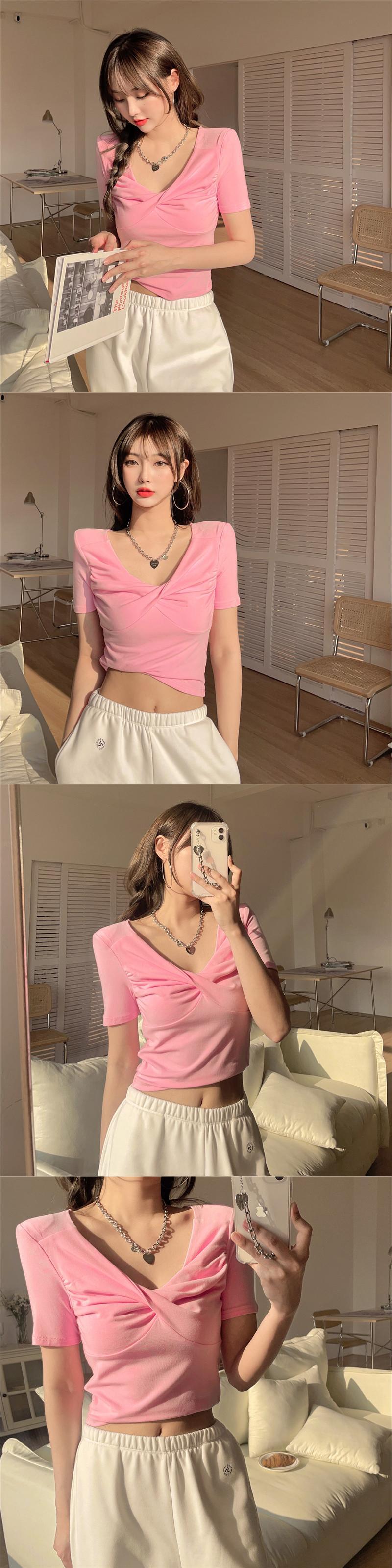 Tシャツ シャツ サマーショートトップス ピンク 夏物 YY-ファッション88121808914