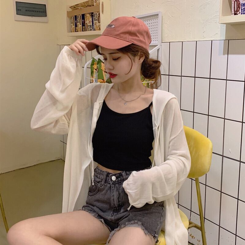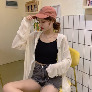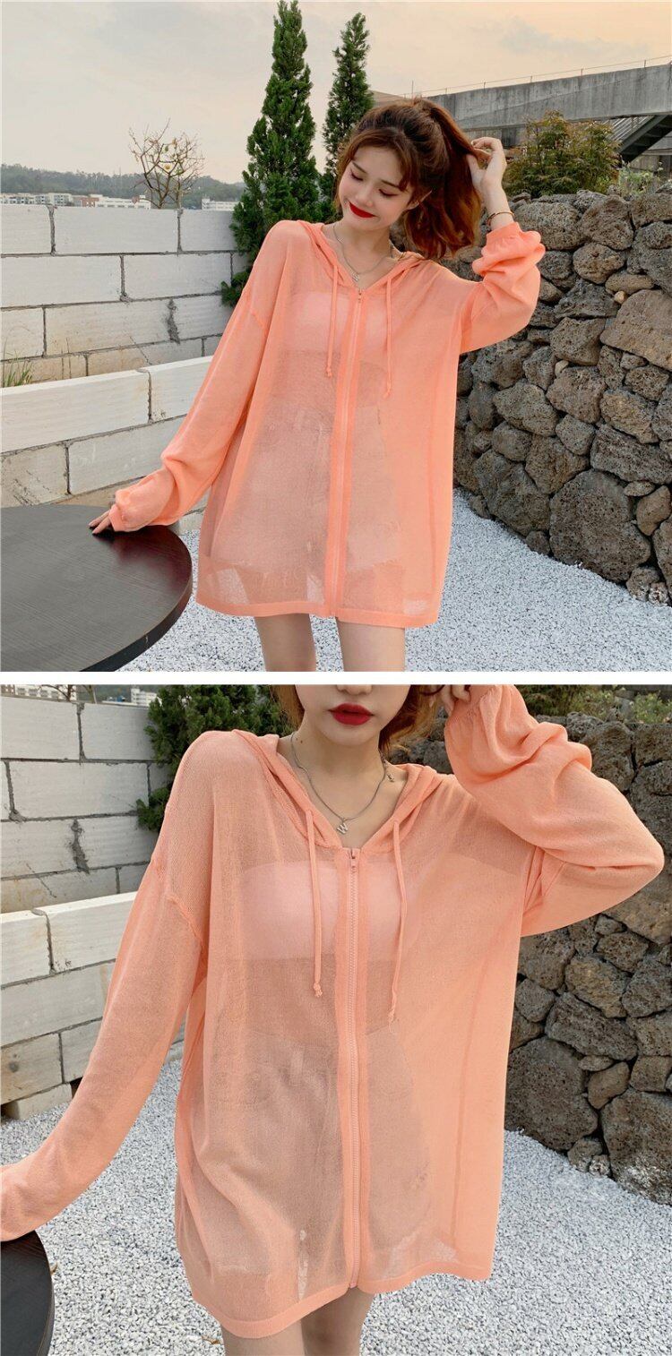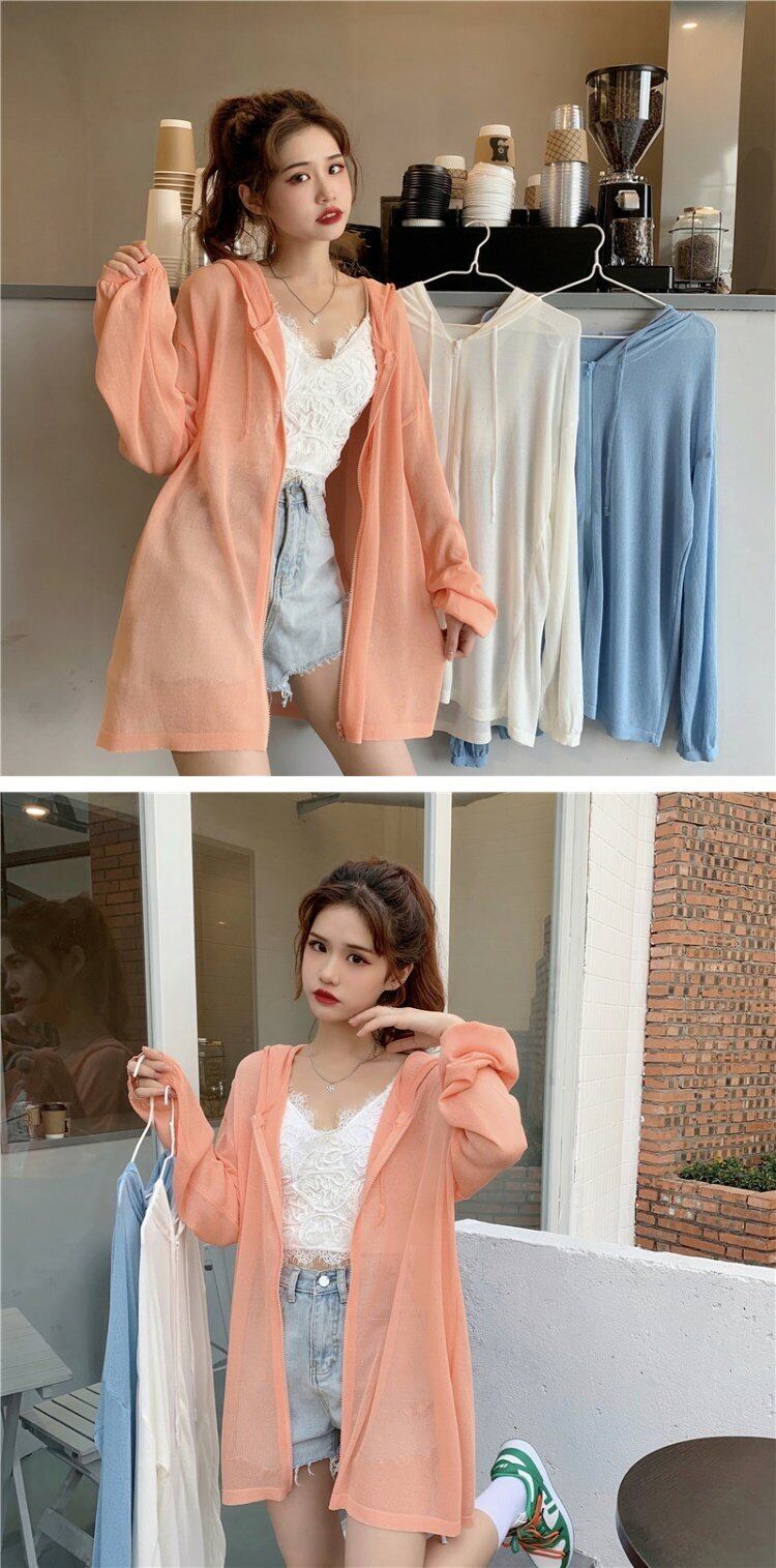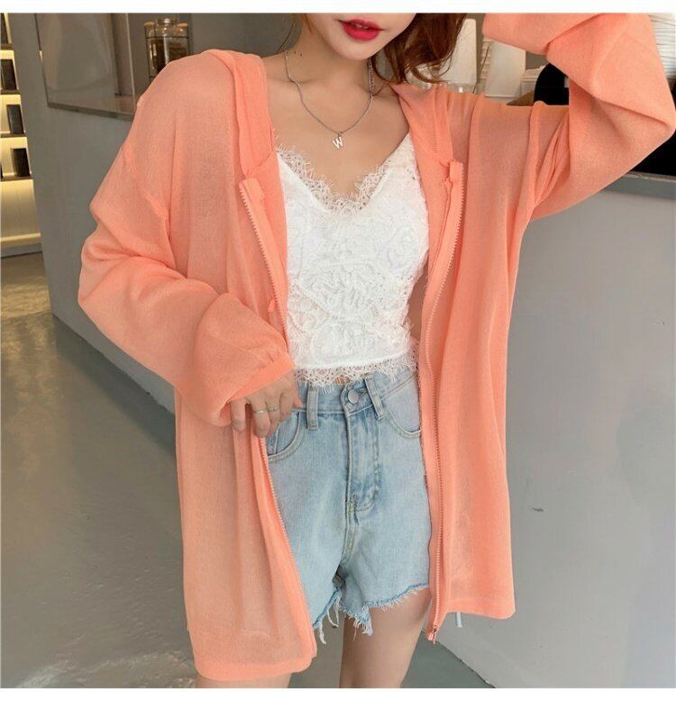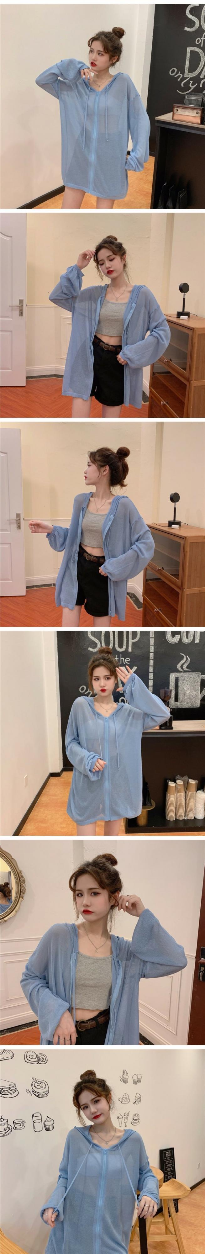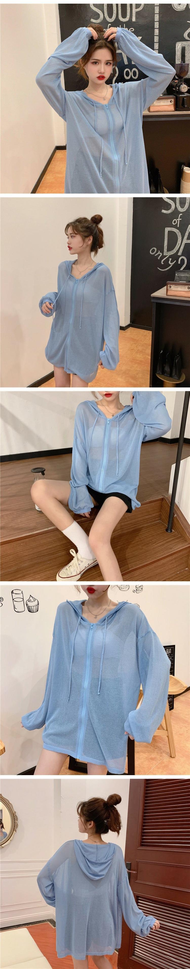 スプリングサマーシャツ ルーズジッパー薄手フードニットジャケット ロング 春物 夏物 YY-ファッション1184139309