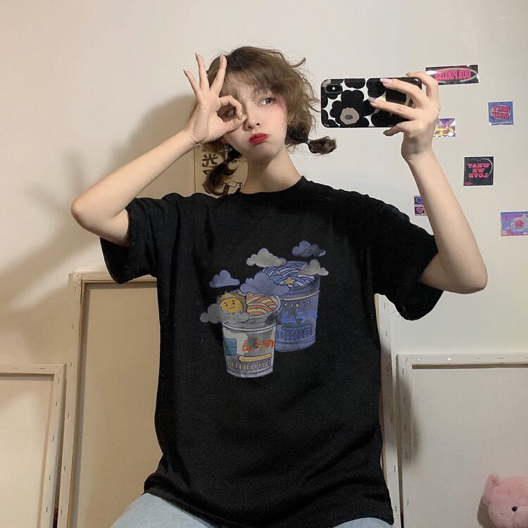 色:白い水彩インスタントラーメンTシャツ,黒の水彩インスタントラーメンTシャツ