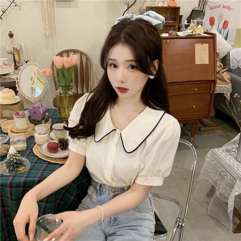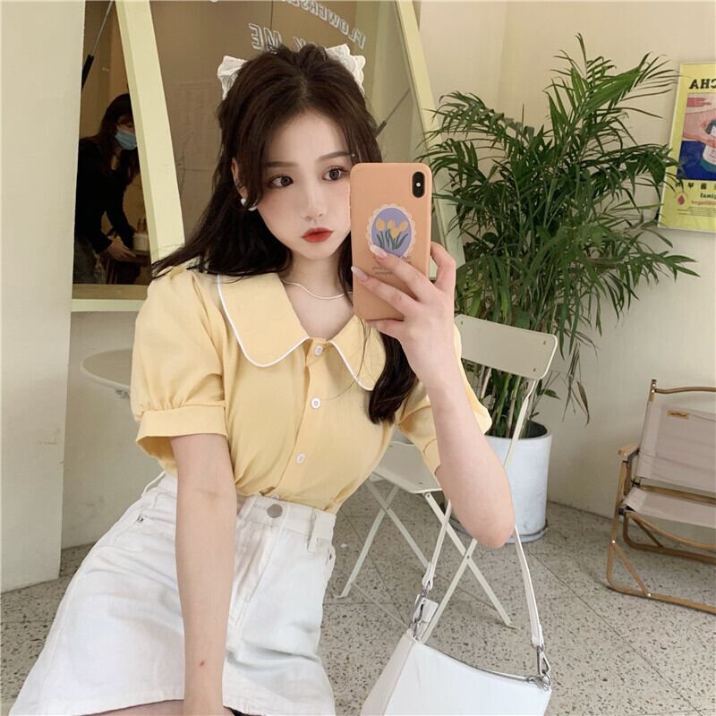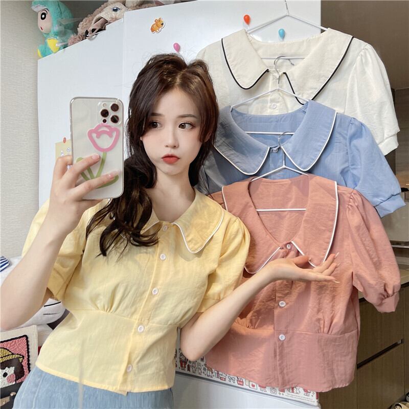 サマースタイル薄手カラースリーブシャツ ショート 夏物 YY-ファッション15285782955