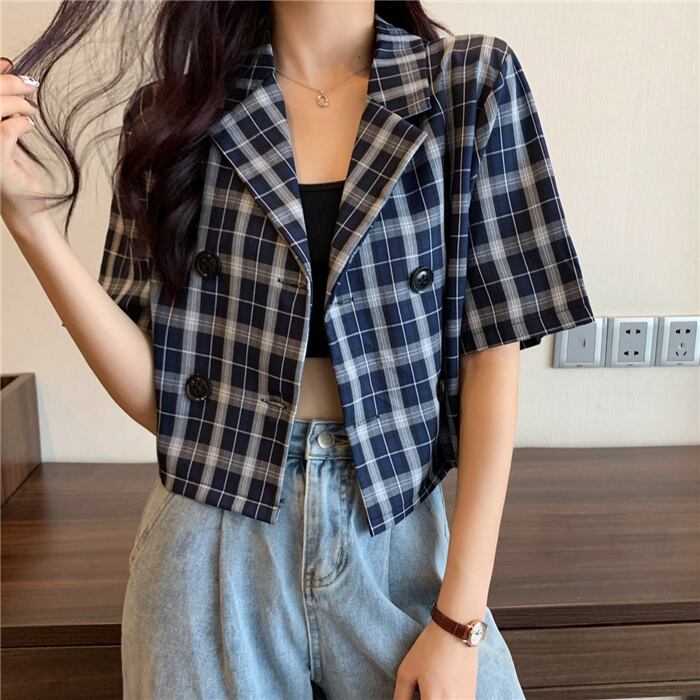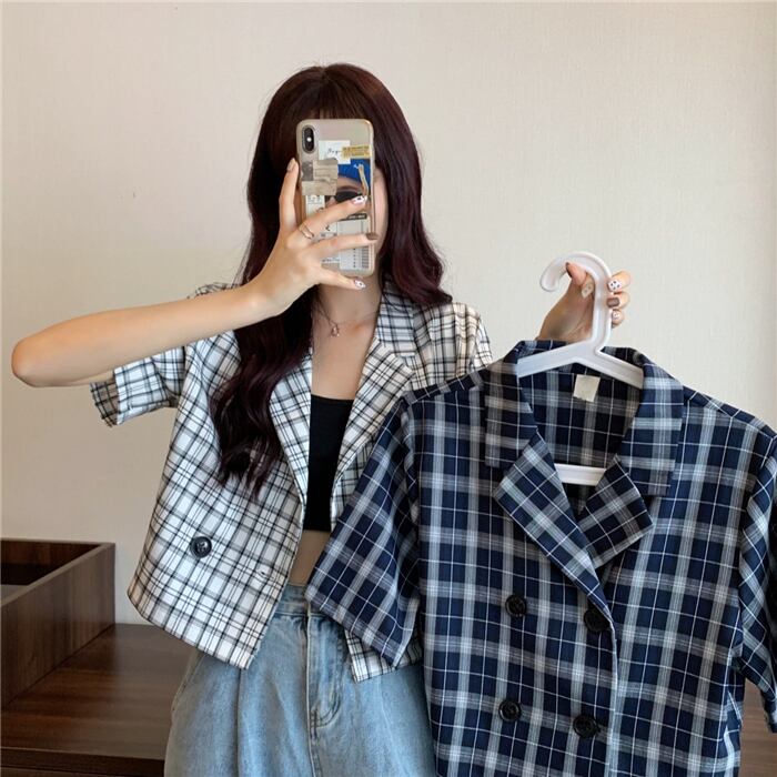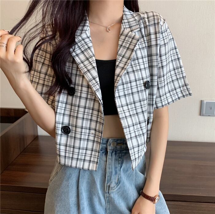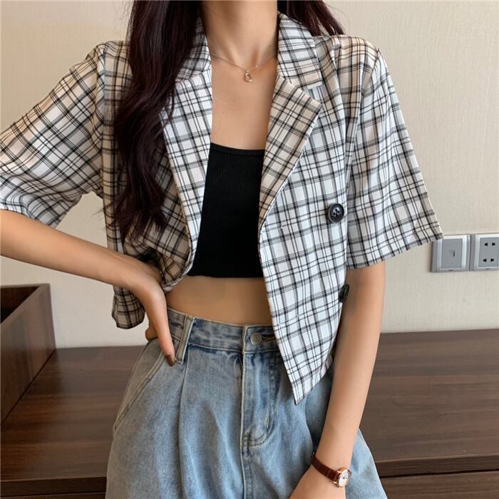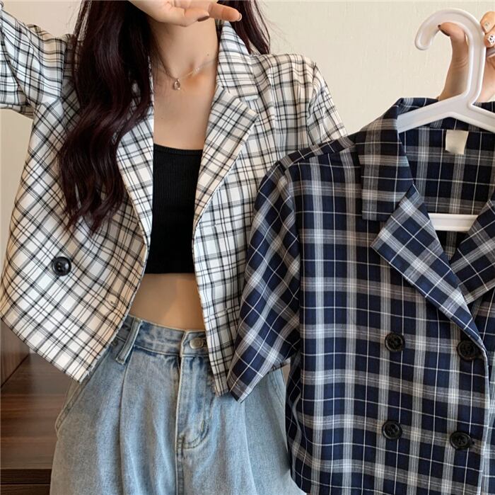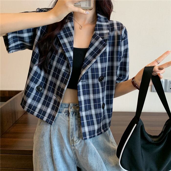 格子柄ショートジャケット レディースサマー薄手カジュアル 夏物 YY-ファッション33782127370