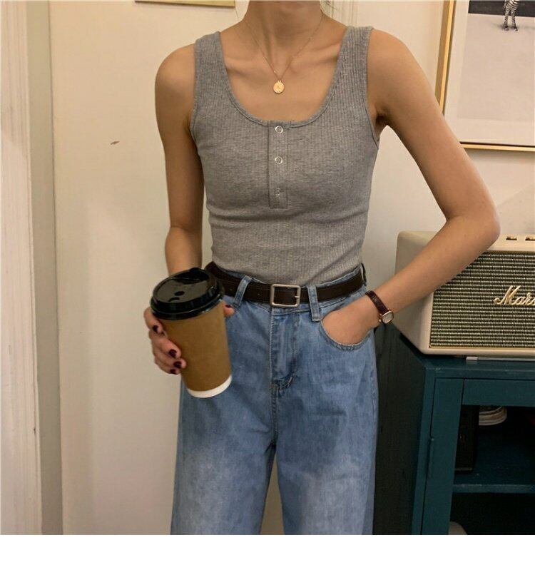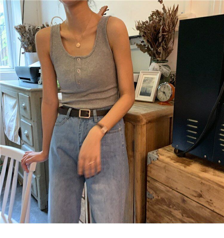 サマーノースリーブショートニットスリムホワイトグレー ブラック 夏物 YY-ファッション65791595208