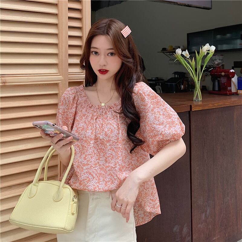 サマーフローラルカラープルオーバー シフォンシャツ トップス 夏物 花柄 YY-ファッション86631444804