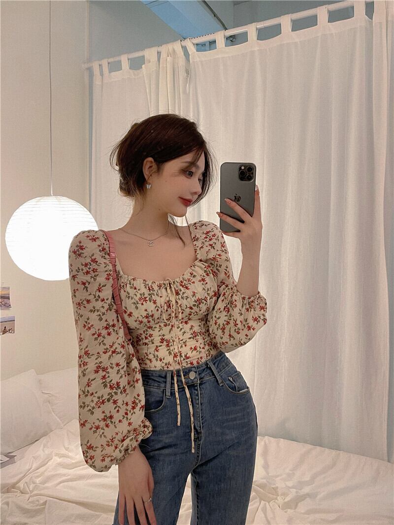 フローラルシャツ スタンダードスタイルスプリングサマーカラー ロング レトロ 春物 夏物 花柄 スクウェア YY-ファッション17734788606